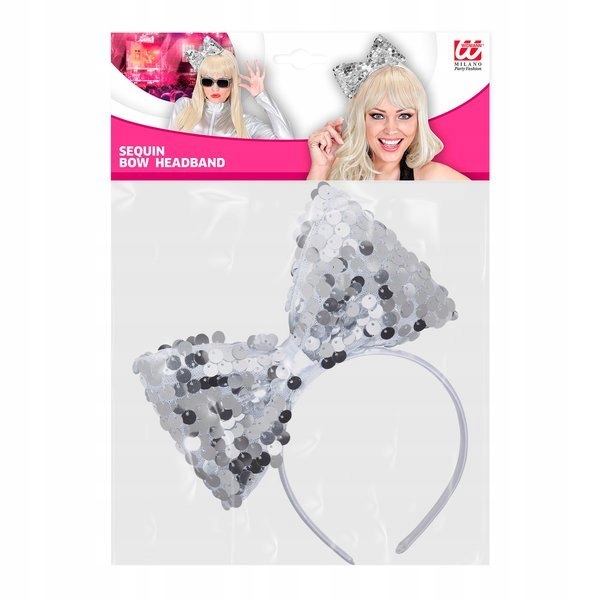 Срібна пов'язка з паєтками, бантик, диско аксесуар p>