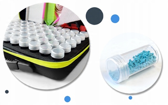 Ви можете забути про цю проблему зараз! У набір входить 60 контейнерів із кришками, кожен з яких вміщує приблизно 2000 кристалів. Завдяки їм ви можете захистити ваші діаманти від розсипання. Крім того, за допомогою прикріплених наклейок ви можете позначити кожен контейнер відповідним номером, що полегшить вам їх пошук.