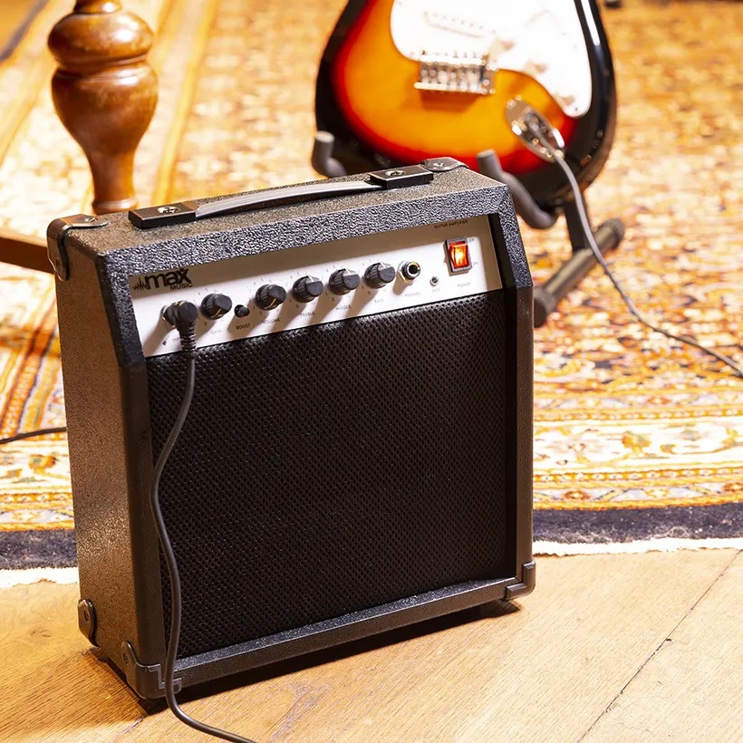 Завдяки 40-ватному гітарному підсилювачу, що входить у комплект, ви готові грати прямо з коробки. Підсилювач оснащений еквалайзером, режимом посилення (дисторшн), входом AUX і роз'ємом для навушників.