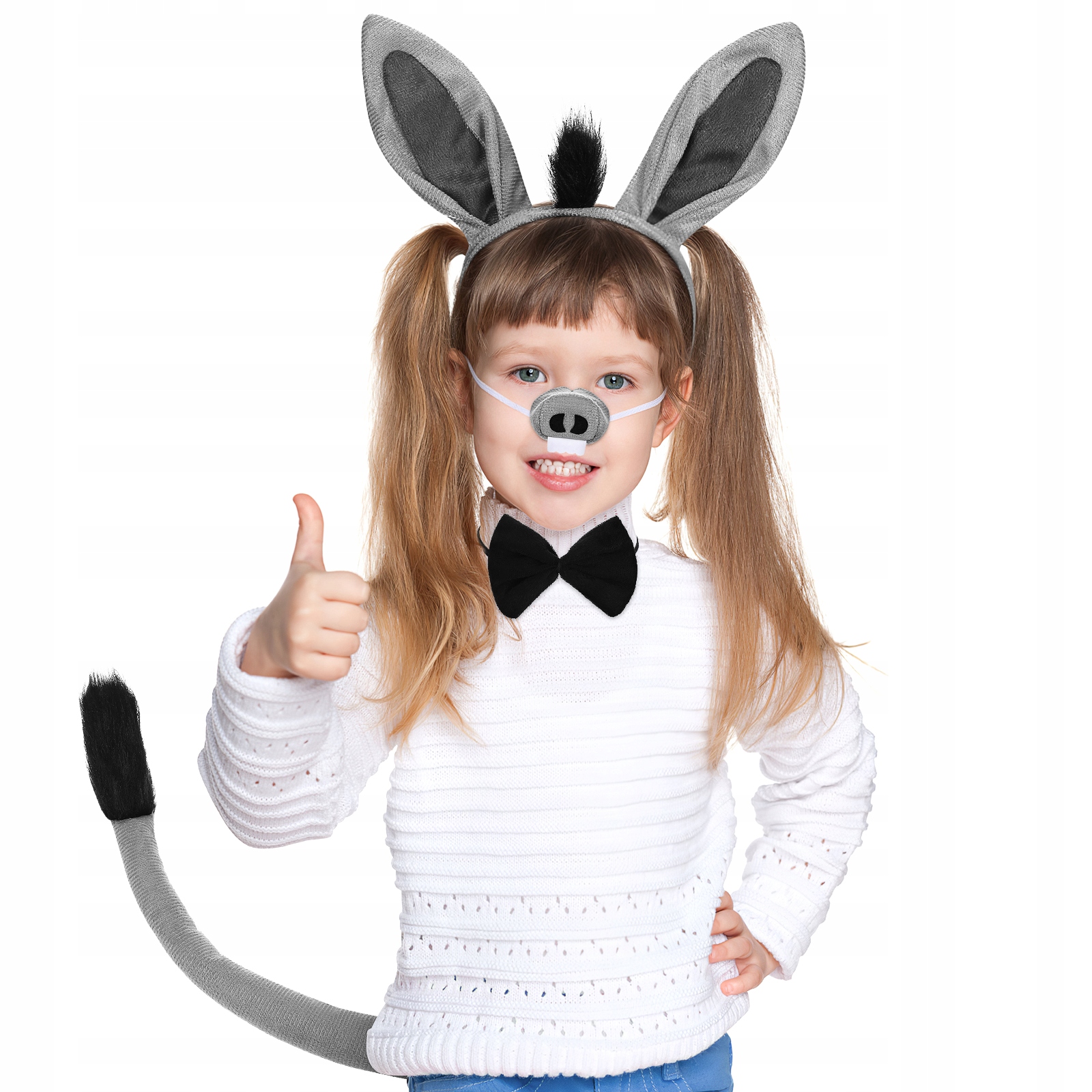 - Набір для косплею: це повний набір реквізиту для костюма осла, включаючи пов’язку на голову, краватку-метелик, ніс і хвіст.