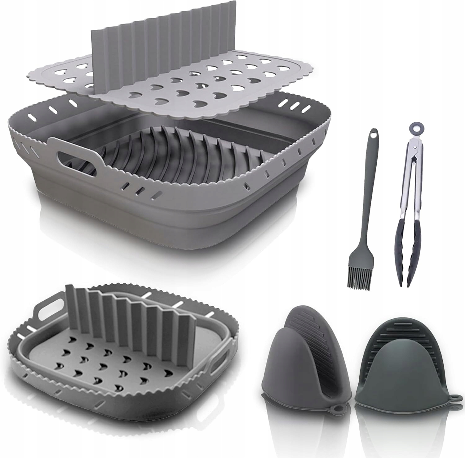 - Силіконова фрикані Вставка є Складений, який полегшує зберігання. і дуже термостійкий. 230 ° C/450 ° F. Горщик фритюрниці, що не є, запобігає кошику для смаження і не залишає залишків. Повітряний фритюрник майже бездоганно чистота. Ліва сторона назовні та за допомогою пензля, видаліть стійкі частини. У посудомийній машині. використовується для випічки або приготування різних страв,