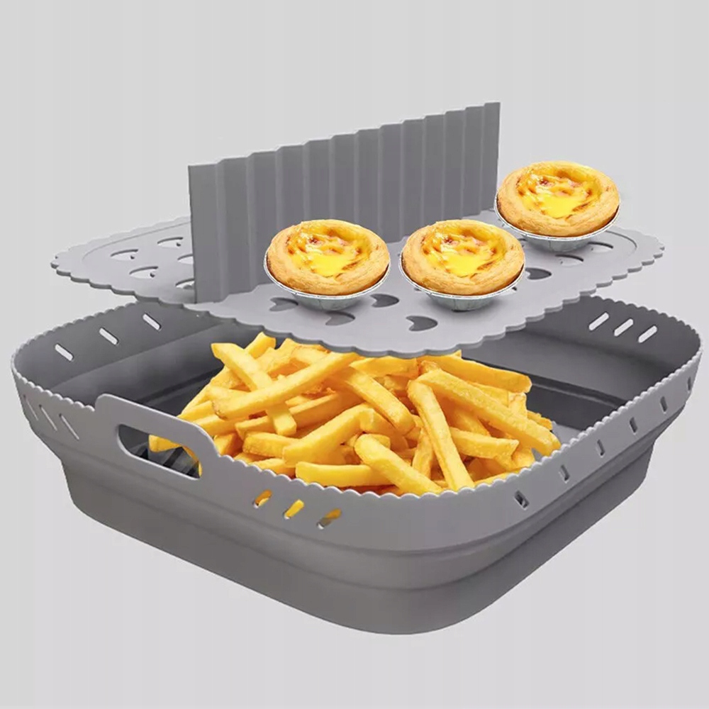 - підходить для квадратних/круглих кошиків фрі з фрі з діагональною, що перевищує 25,5 см. > 🧆【 Складна силіконова вставка】: