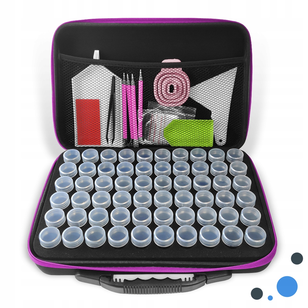 Ви можете забути про цю проблему зараз! У набір входить 60 контейнерів із кришками, кожен з яких вміщує приблизно 2000 кристалів. Завдяки їм ви можете захистити ваші діаманти від розсипання. Крім того, за допомогою прикріплених наклейок ви можете позначити кожен контейнер відповідним номером, що полегшить вам їх пошук.