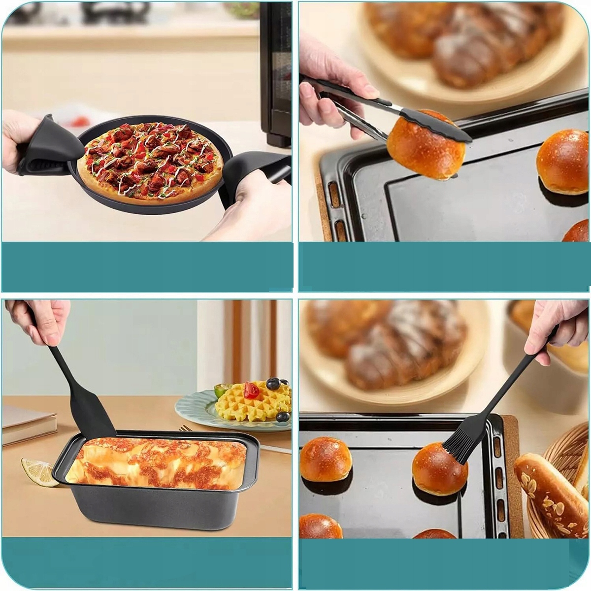 Наш набір аксесуарів для аерофритюрниці включає 1 вставку для аерофритюрниці, 1 деко для піци, 1 металевий тримач, 1 багатофункціональну решітку з 4 шампурами, 1 решітку для тостів, 6 силіконових чашок для кексів, 1 форму для торта, 1 пару силіконових рукавичок, 1 харчові щипці, 1 шпатель і 1 масляна кисть. Цей повний набір аксесуарів для аерофритюрниці підходить для 99% страв у аерофритюрниці та задовольнить потреби всієї родини.