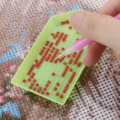 - МОЖЛИВІСТЬ ТОЧНОГО НАКЛЕЮВАННЯ МАЛЮНКІВ- набір для алмазної вишивки є надзвичайно практичний аксесуар, який містить, серед іншого: шпатель для пресування та розрівнювання алмазів.