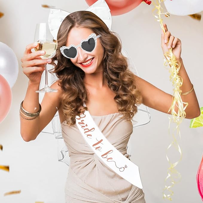 - Наша весільна фата виготовлена з ніжного білого тюлю з дрібними намистинами, м'яка та зручна. Біла пояска для нареченої виконана з атласу з золотим написом, підходить на будь-який розмір. Наші сонцезахисні окуляри у формі серця мають вінтажний візерунок із перлинним декором, який робить їх красивими, унікальними та елегантними, гарним вибором для модного аксесуара