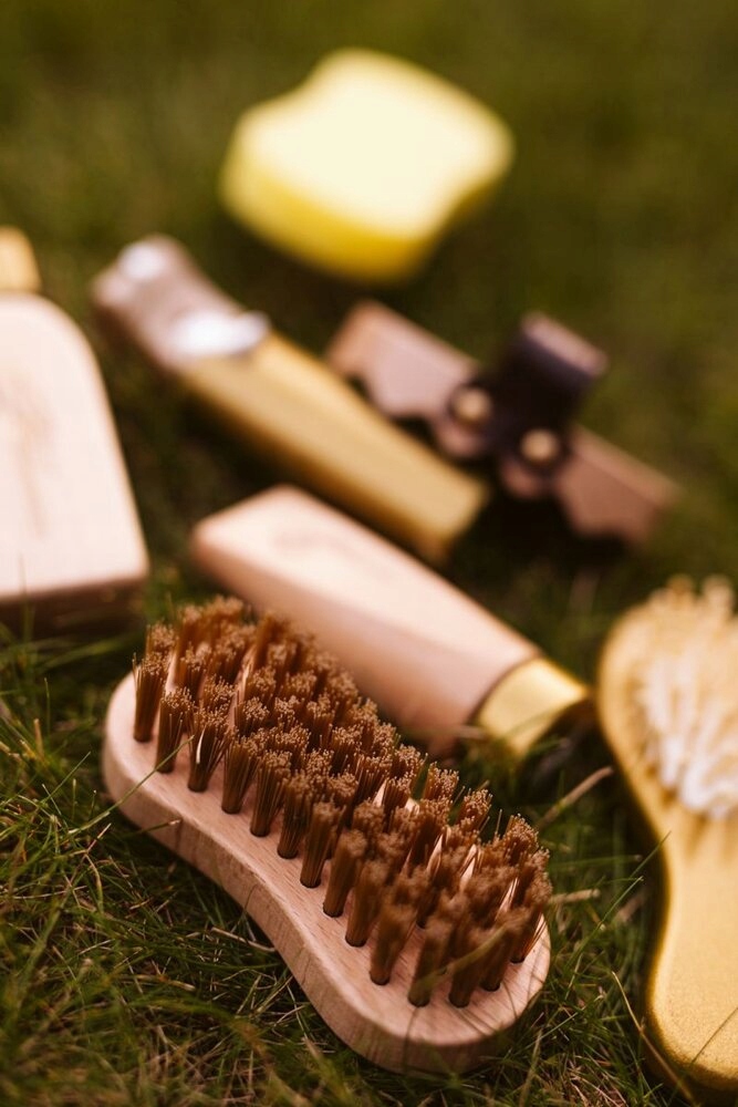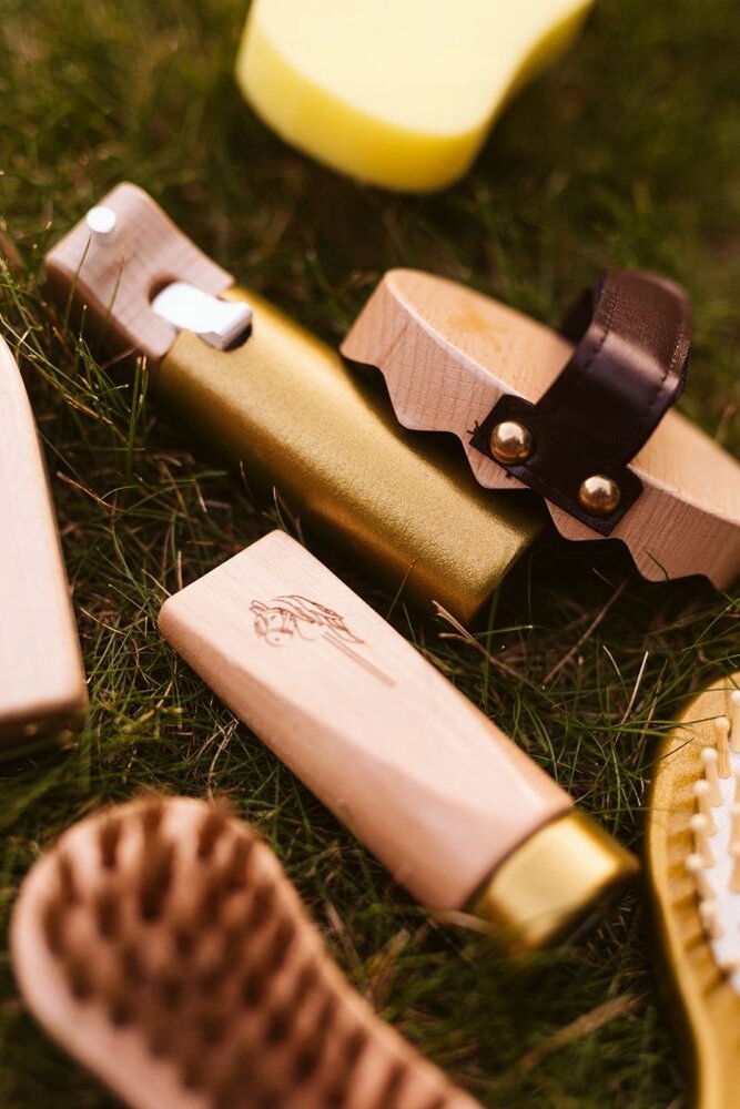 - Щітка для миття: ретельно очищає шерсть коня, видаляючи бруд і надаючи йому блиск .