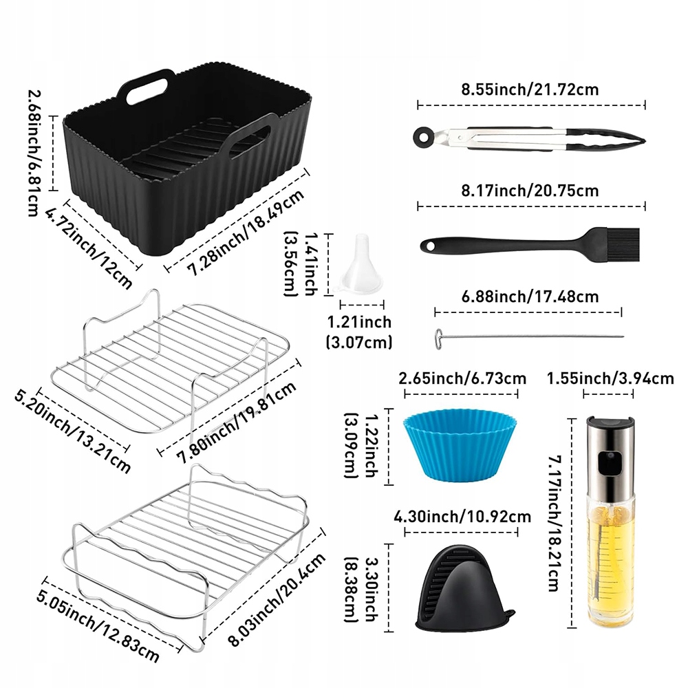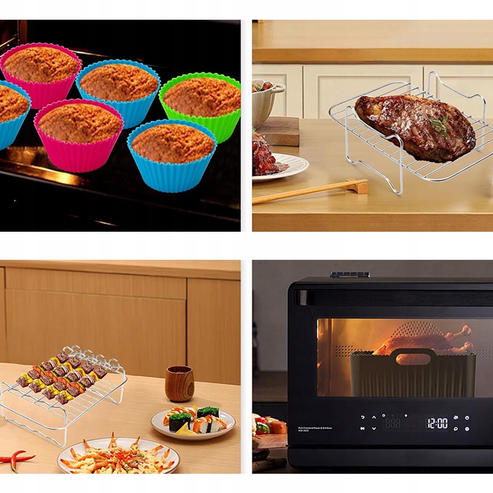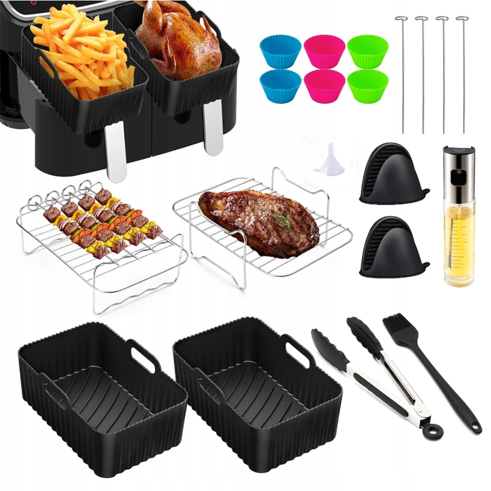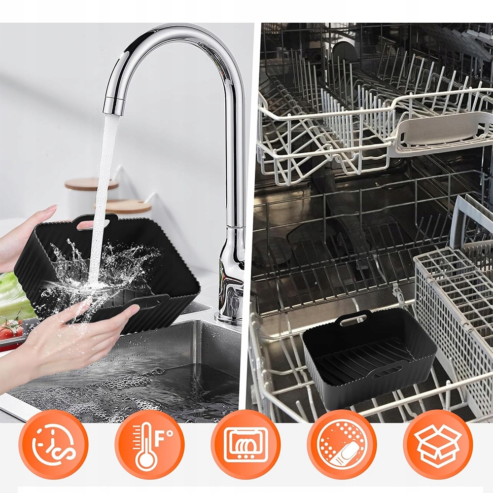- Наші аксесуари для аерофритюрниці можна використовувати при температурах від -20°C до 230°C і підходять для аерофритюрниць, духовок і мікрохвильових печей.