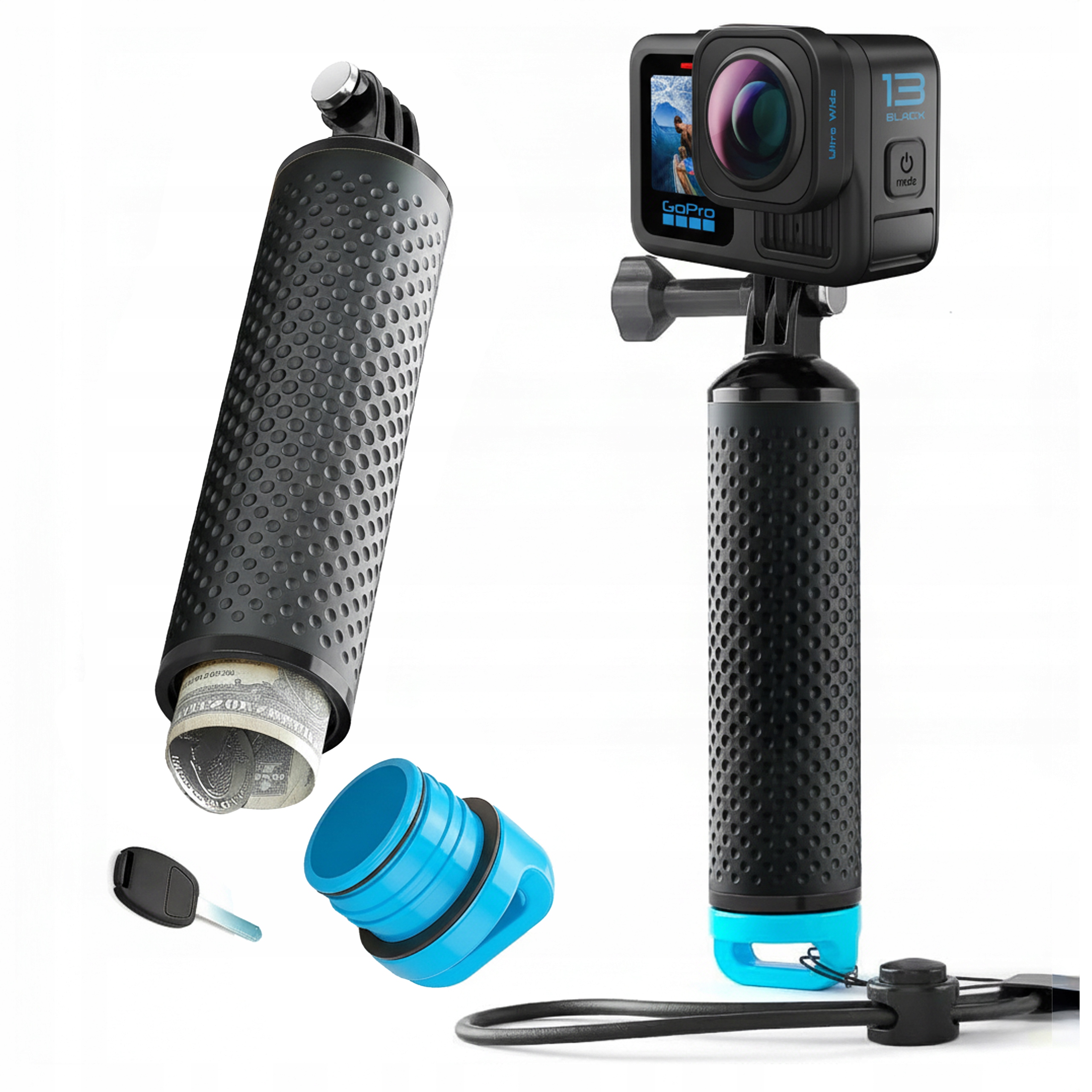 Опустіть її у воду, і кінець ручки вискочить на поверхню, що полегшить пошук камери. Зручна неслизька ручка, вкрита спеціальною гумою, забезпечує надійний хват навіть у мокрому стані. Додатково в комплект входить ремінець. Ідеальне рішення для серфінгу, каякінгу, дайвінгу та інших водних видів спорту.