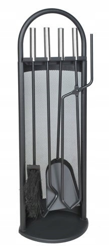 Набір аксесуарів для каміна з 5 предметів із сучасним дизайном. Міцний, виготовлений зі сталі та простий у використанні. Набір легко підтримувати в чистоті завдяки підставці, оснащеній підставкою, яка затримає бруд і попіл від інструментів, залишаючи ваш дім чистим. Чохол захищає аксесуари від іскор від каміна.