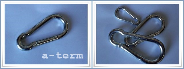 Металева фурнітура подовженої або овальної форми з відкидною пружиною для закривання замку, що полегшує їх з’єднання з іншими елементами. Використовується як сполучний елемент для еластичних шнурів. В основному використовується в будівельній промисловості, вітрильному спорті та альпінізмі.