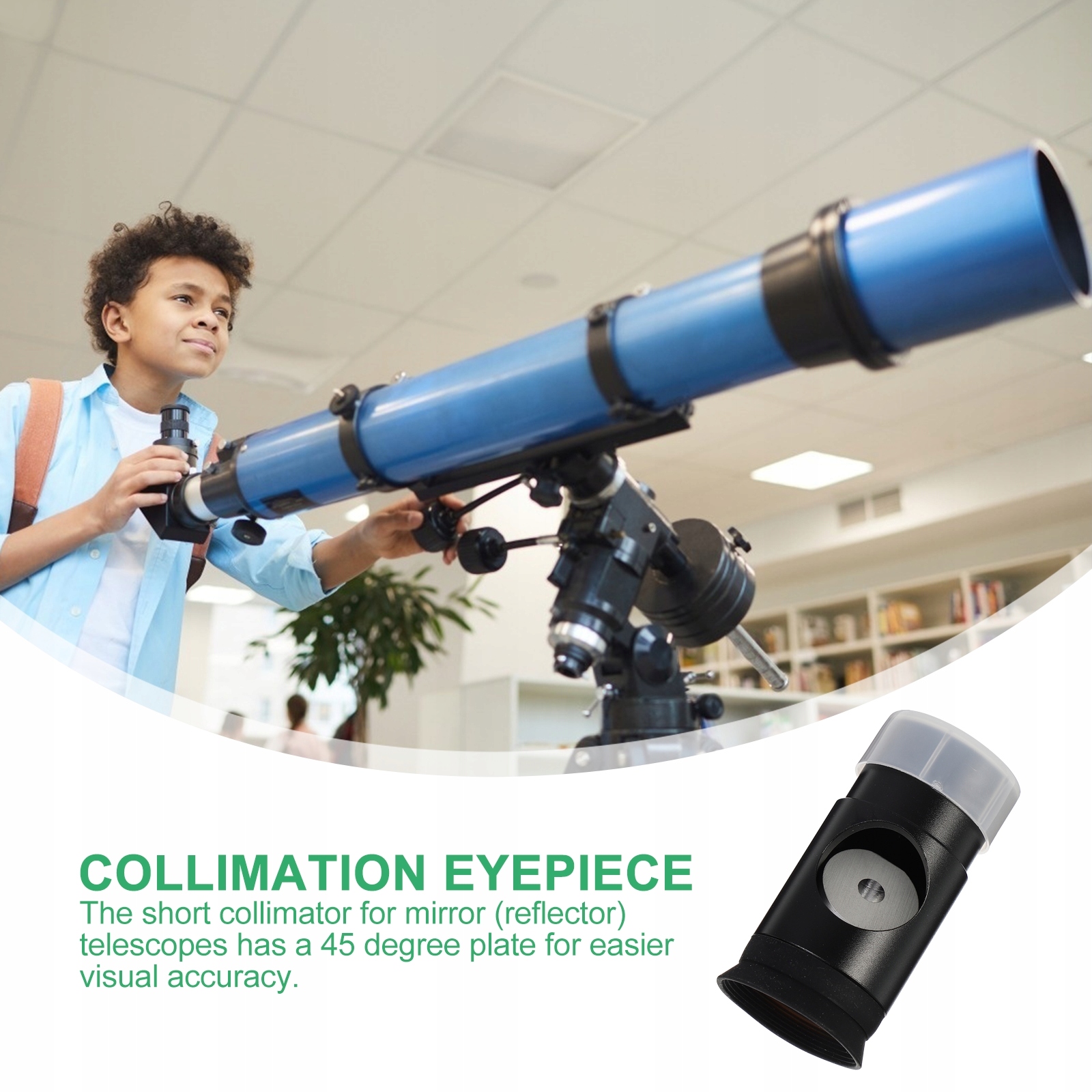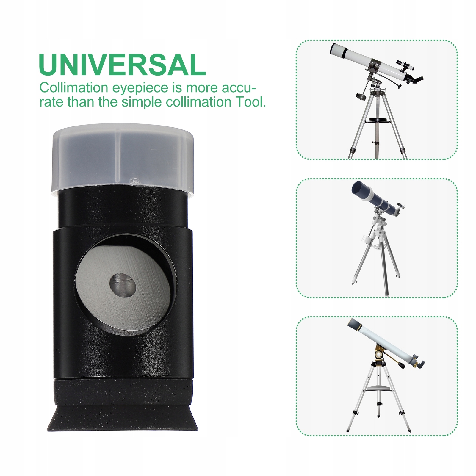 ✅ колімація - це процес точної настройки оптичної осі оптичних елементів механічною осі. Він може зробити цю роботу, щоб світло телескопа створювала чіткі зображення посеред окуляра. Колліментальне око точніше, ніж простий кольоровий інструмент.