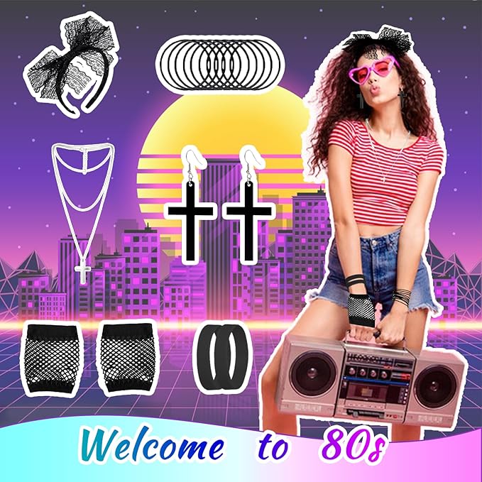АКСЕСУАРИ ДЛЯ КОСТЮМІВ У СТИЛІ 80-Х РЕТРО НАБІР ДЛЯ ВЕЧІРКИ НА ХЕЛОВІН