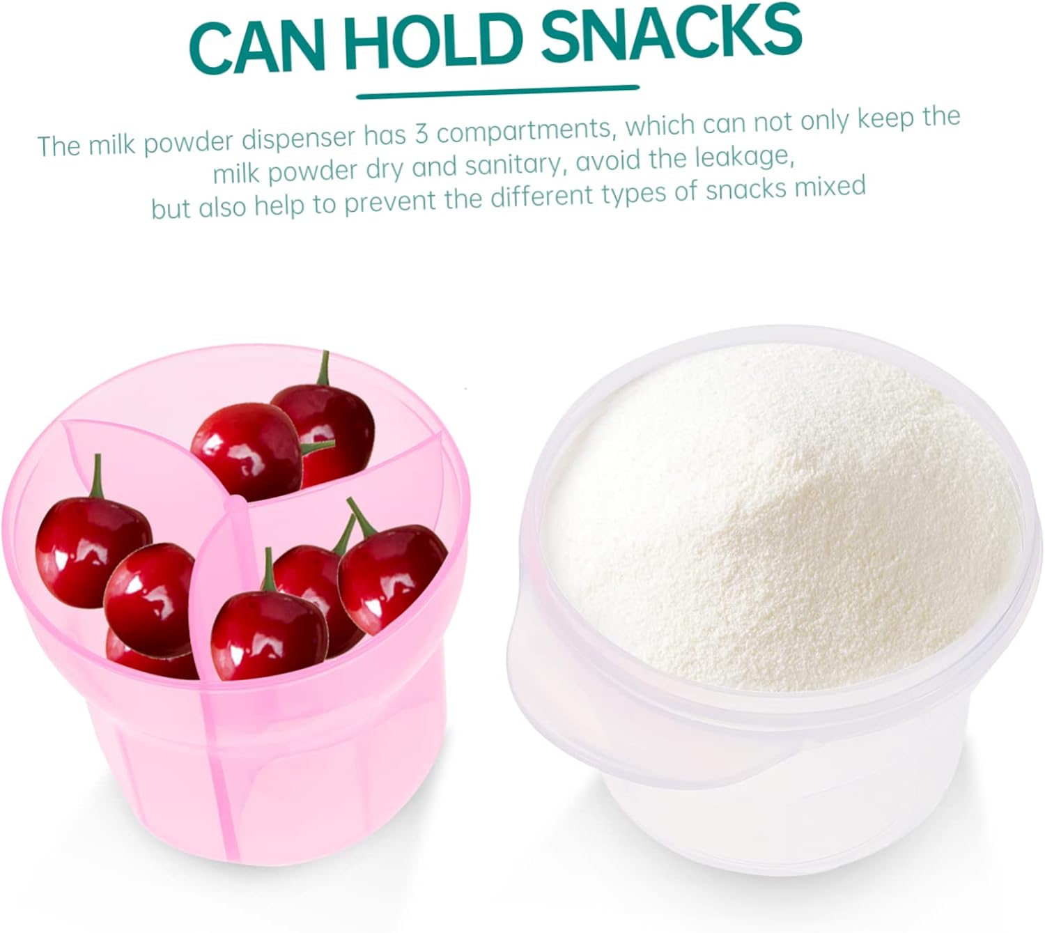 Контейнер для закусок, компактний, портативний і легкий, його дуже зручно брати з собою. Диспенсер для дитячого харчування також можна використовувати як чашку для перекусів або контейнер для зберігання горіхів, солодощів, фруктів тощо. Дорожню коробку для дитячого харчування дуже легко мити. Просто промийте виріб теплою водою з милом. Портативний диспенсер для порошку, простий у зберіганні та транспортуванні. Підходить для кемпінгу на природі. Подорожі. Контейнер для дитячого харчування Цей диспенсер для їжі простий і просторий.