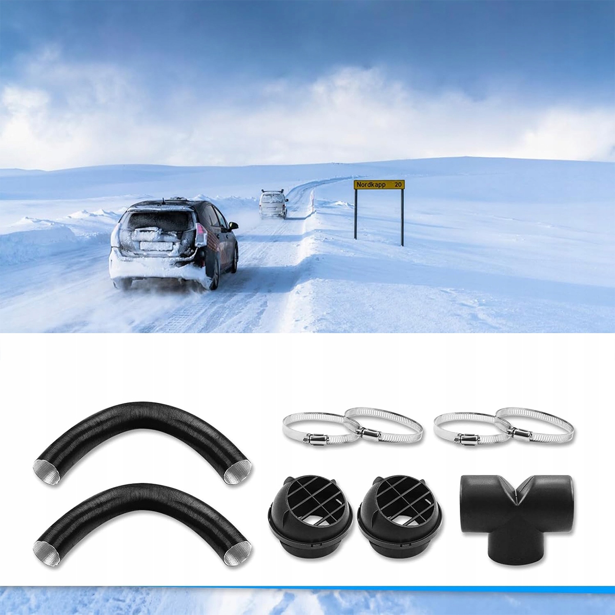Підходить для повітроводів діаметром 75 мм. 2 х теплові повітроводи. Вентиляційний отвір обігрівача. Підходить для каналів теплого повітря радіаторів Eberspacher, Webasto та Propex.