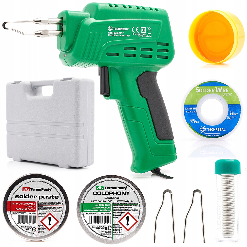 Набір трансформаторних паяльників Techrebal 150W у валізі + 2 жала, олово, каніфоль