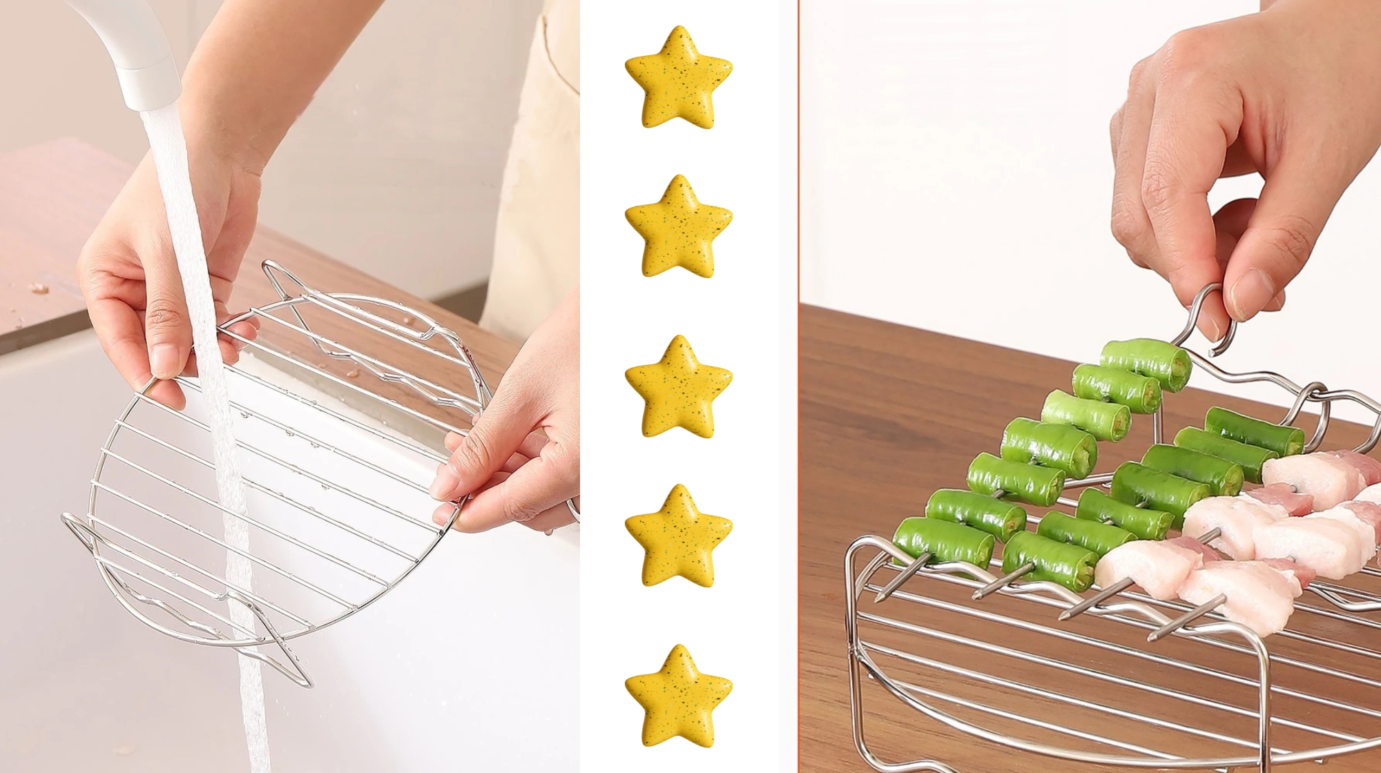 ✴️ Після приготування на грилі ви можете просто кинути решітку та шампури в посудомийну машину, заощадивши час на очищення.