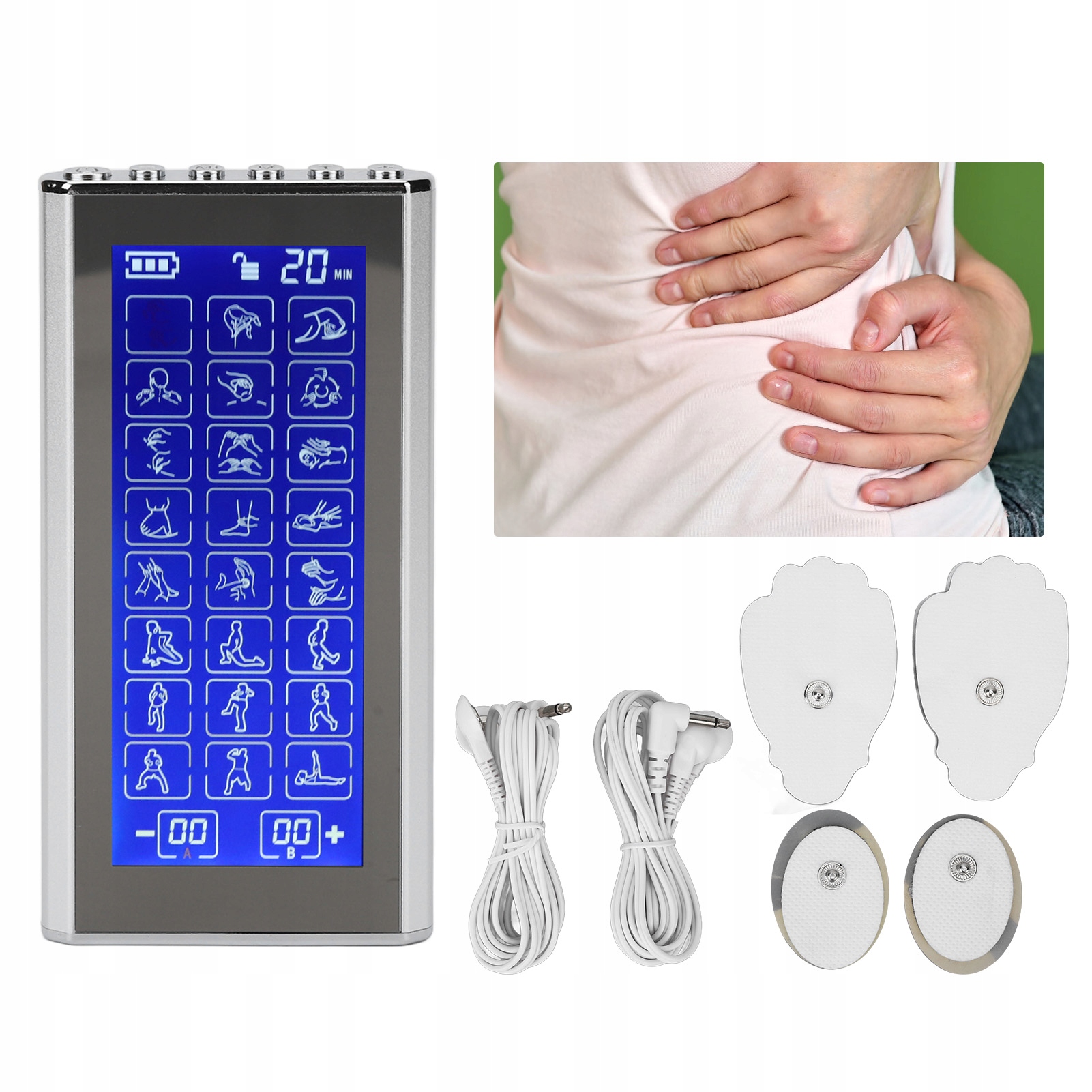 5. Портативний та атдворний: Maee достатньо, щоб поміститися в кишені, електроди стимулятор м’язів можна використовувати в офісі, автомобілі чи подорожі. Суб -вдосконалення багаторазового використання можуть прилипати до шкіри.
