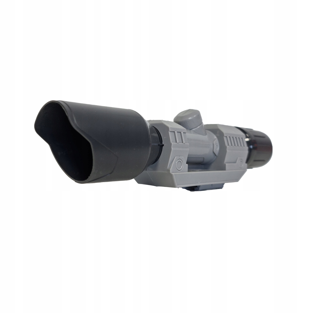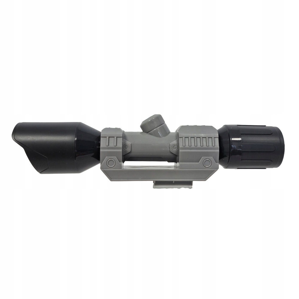 Снайперський приціл - схожий на підзорну трубу, і завдяки універсальному кріпленню ми можемо встановити його на будь-який бластер Nerf з верхньою частиною тактична залізниця. У видошукачі є дві хрестоподібні шкали. Приціл має довжину приблизно 23 см