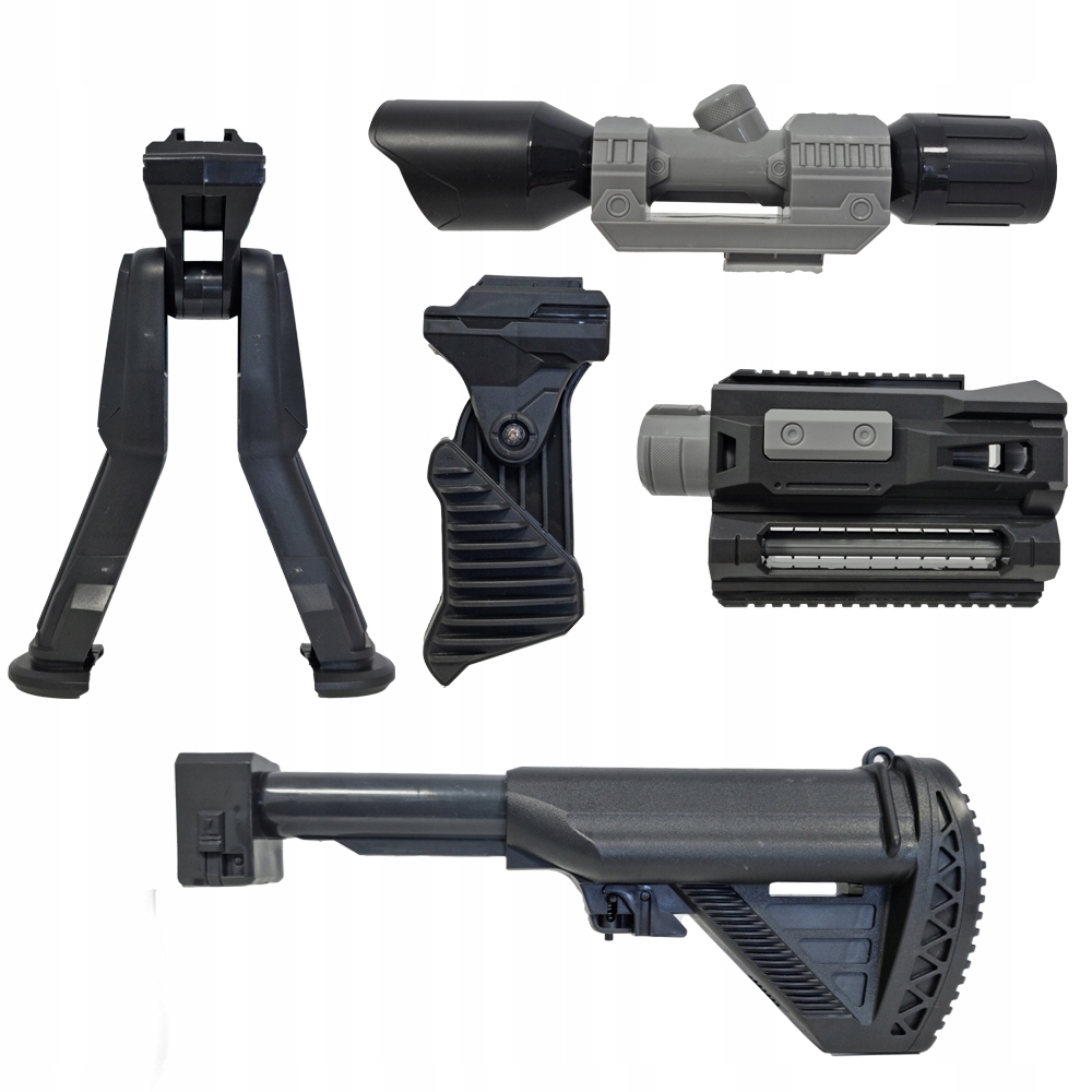 Ось набір із 4 частин, який дивовижно змінить зовнішній вигляд вашого пускового пристрою. У набір входять: ложа, снайперський приціл, ствол з двома направляючими, сошка і штурмова рукоятка.