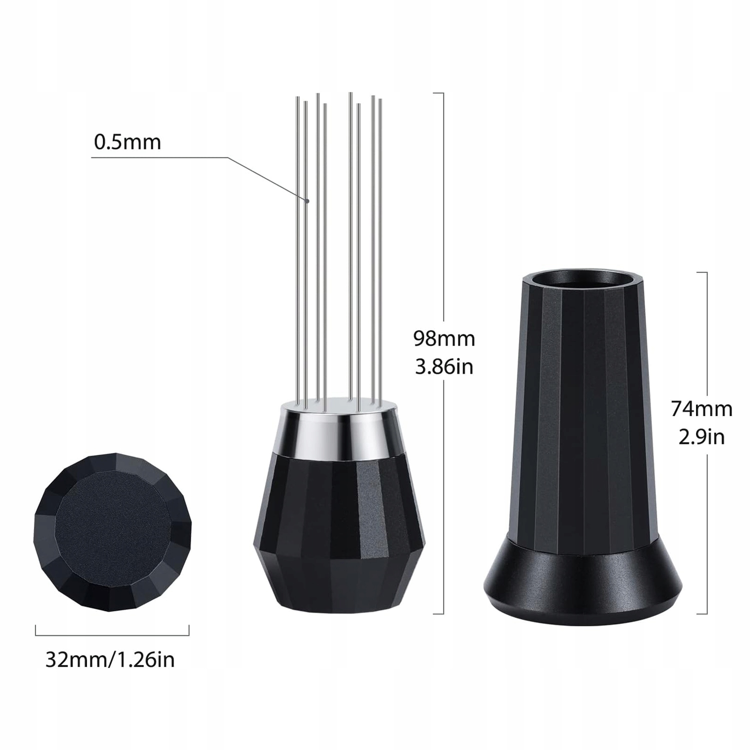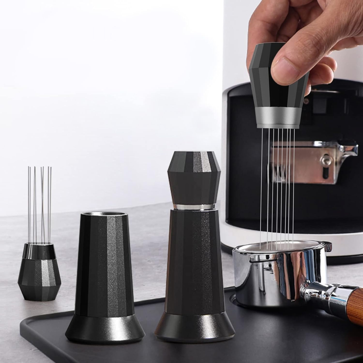Професійний розподільник для змішування кави для бариста, алюмінієвий сплав, тримач для голок (матовий чорний)