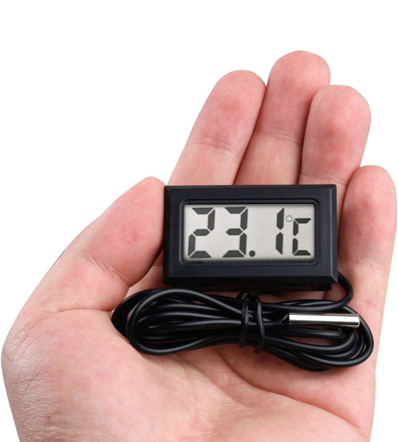 Цифровий термометр ідеально підійде для вашого будинку, квартири та саду. Оснащений зондом з кабелем, який дозволить вимірювати температуру не тільки за вікном, але і в акваріумах, холодильниках, морозильних камерах, коптильнях або теплицях. Датчик є водонепроникним, його діапазон вимірювань від -50°C до 110°C. Корпус термометра має спеціальні лапки, які утримують його в отворі, наприклад, у кришці акваріума. Крім того, він оснащений чітким РК-дисплеєм.