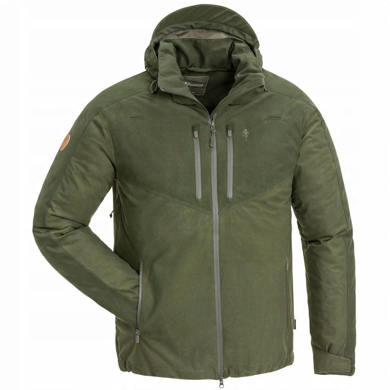 Мисливська куртка з вітро- та водонепроникною мембраною та хорошою повітропроникністю. Проклеєні шви. Двостороння блискавка. Знімний капюшон з посиленим козирком. Вентиляційні блискавки з боків. Кишеня для радіо з двох сторін. Дві передні кишені. Одна внутрішня кишеня. Шкіряний логотип Pinewood.