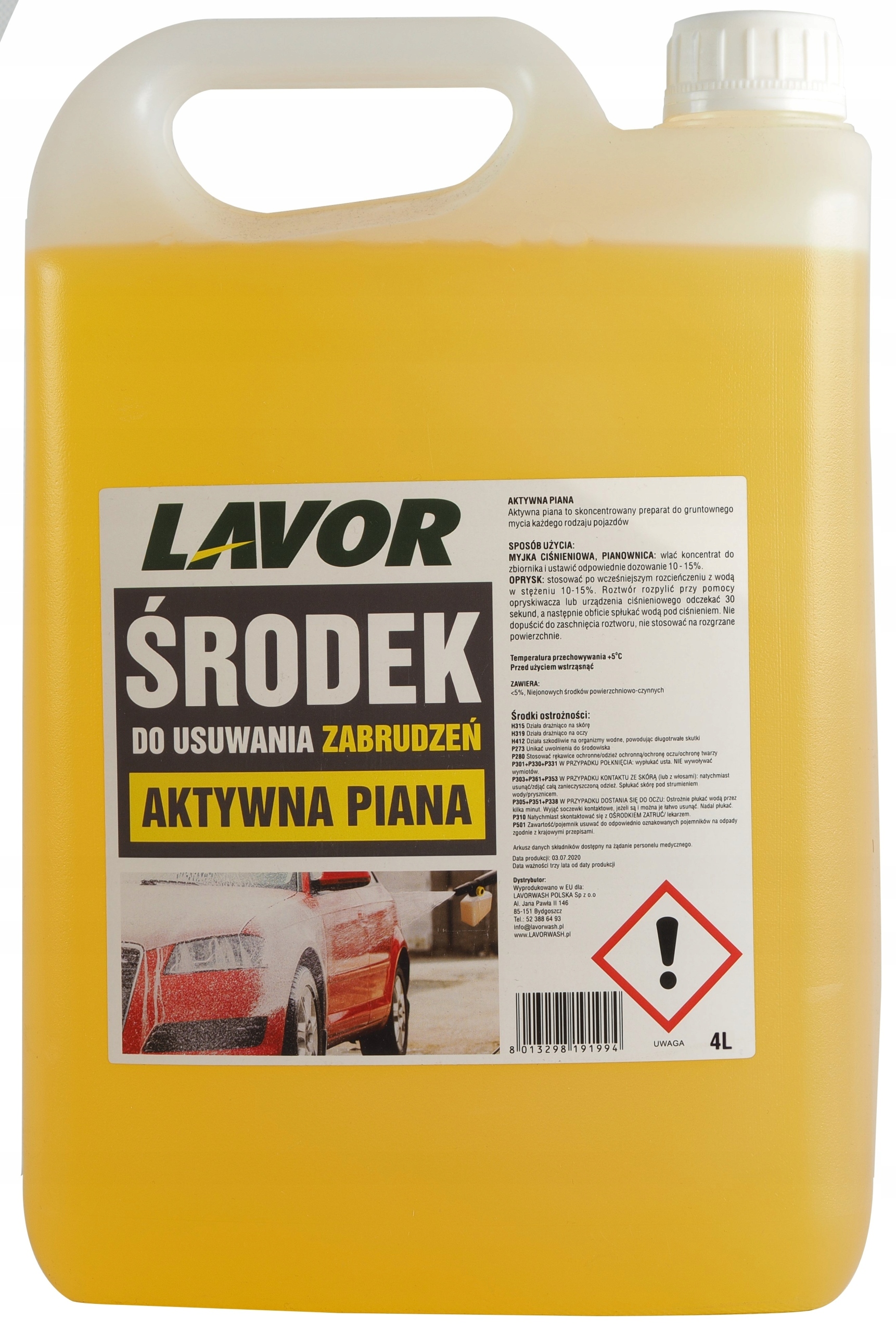 Висококонцентрована активна підготовка для промивання всіх видів транспортних засобів та промислових застосувань. Супер Активна формула швидко проникне в бруд походження дорожнього руху з будь -якої поверхні кузова автомобіля. Це легко змити. Він має полірувальні властивості. Спеціальні властивості промивання дозволяють використовувати активну піну для спеціалізованих застосувань, таких як: миття двигунів, мастила, миття автомобілів, миття майстерні, миття сільськогосподарської техніки (трактори, причепи тощо), знежиренні поверхні. Він також буде успішно використаний у домашньому секторі як пральний агент на пластикових елементах у саду (стільці, столи) фасади прання пилом та пилом, а при девуванні жирних плям від одягу. Формула безпечного продукту гарантує відмінні ефекти від першого використання.