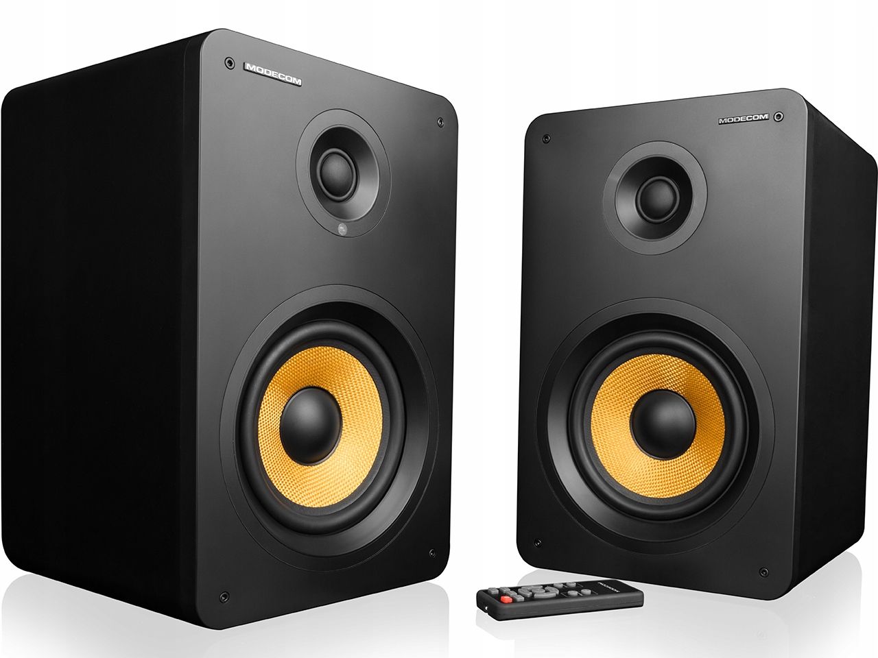 Масивні динаміки розміром 357 x 240 x 220 мм відмінно впишуться як в сучасний, так і в класичний дизайн інтер'єру. Динаміки з чорної плити МДФ і жовтої нижньої мембрани ідеально доповнюють ідеальний звук, який виходить від MODECOM Eclipse 180 відразу після їх підключення.