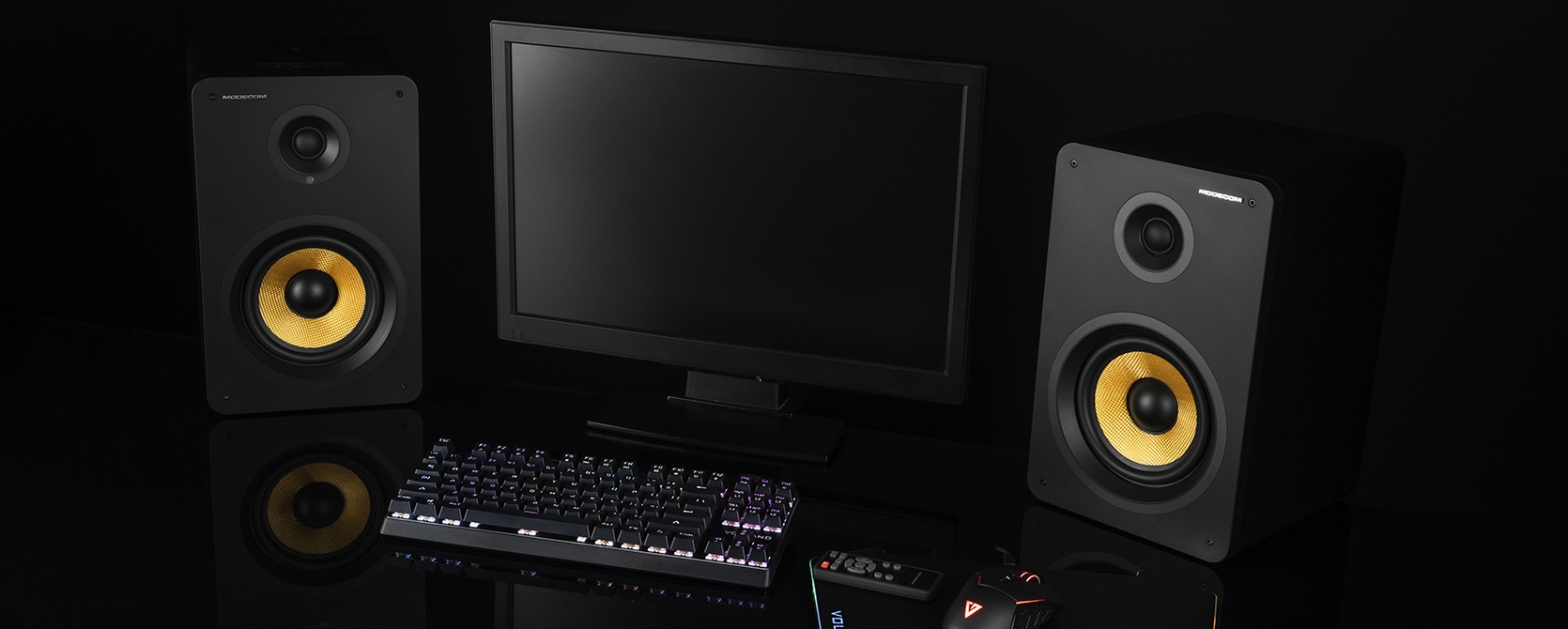 Масивні динаміки розміром 357 x 240 x 220 мм відмінно впишуться як в сучасний, так і в класичний дизайн інтер'єру. Динаміки з чорної плити МДФ і жовтої нижньої мембрани ідеально доповнюють ідеальний звук, який виходить від MODECOM Eclipse 180 відразу після їх підключення.