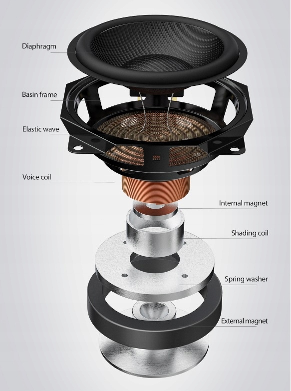Вуглецеве волокно надзвичайно міцне та дуже жорстке, але легке – ідеальні властивості для динаміків . Невелика вага вуглецевого волокна дозволяє низькочастотному динаміку мати швидку перехідну реакцію, а його висока міцність і жорсткість зменшує нелінійні спотворення, зводячи до мінімуму небажані вторинні вібрації під час руху динаміка під час виробництва звуку. Загалом матеріал із вуглецевого волокна НЧ-динаміка допомагає точніше відтворювати звук і забезпечує більш захоплюючий досвід прослуховування з високоякісним звуком.