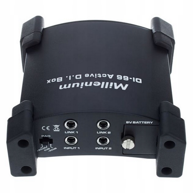 Millenium DI 66 — це активний стерео DI-бокс, який ідеально підходить для студії та на сцені. Оснащений вхідним гніздом, він дозволяє підключати широкий спектр інструментів і пристроїв. Завдяки перемиканню ослаблення сигналу (0 дБ або -30 дБ) і функції +20 дБ link pad, пристрій забезпечує повний контроль над рівнем сигналу. Два виходи XLR дозволяють зручно передавати сигнал на мікшери або підсилювачі. Можливість перемикання між стерео і моно і функція Ground Lift усуває перешкоди і петлі заземлення. Гальванічна розв'язка гарантує чистоту сигналу, а міцний металевий корпус із кутовими протекторами робить пристрій дуже стійким до пошкоджень. Він працює від батареї 9 В і підтримує діапазон від 10 до 40 000 Гц.