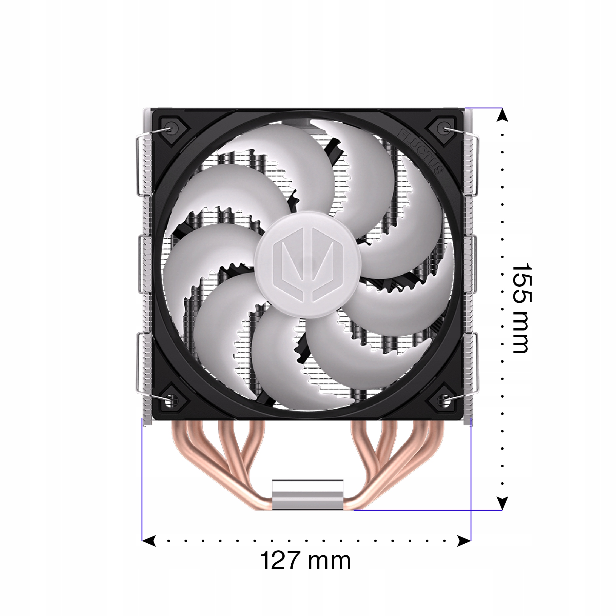 Повітряний потік забезпечує відзначений нагородами вентилятор Fluctus 120 PWM ARGB із додатковим напівпасивним режимом. Його лопаті спрофільовані таким чином, щоб якомога точніше охоплювати щільно розташовані ребра радіатора. У нас є теорія, згідно з якою його достатньо збільшити, у світі вибухне новий льодовиковий період. Він відмінно справляється зі зниженням температури.