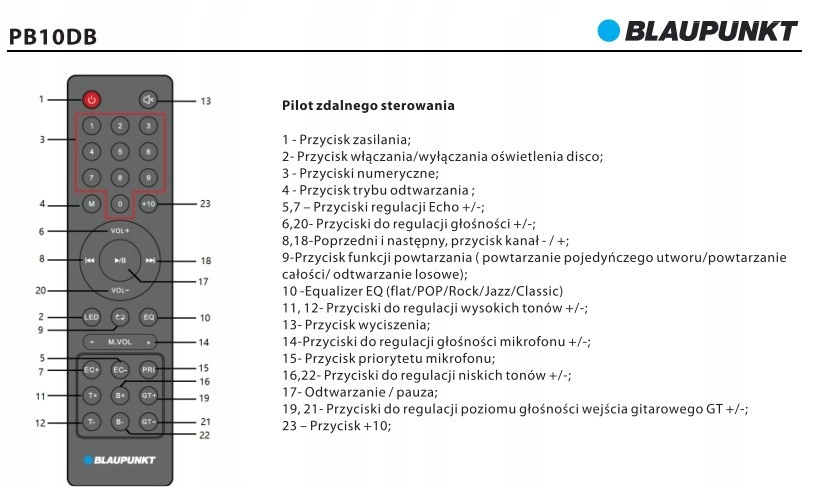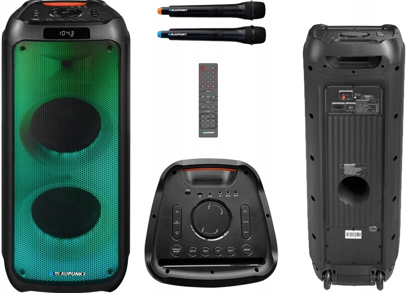 blaupunkt pb10db - це не інший динамік Bluetooth. Це повноцінна, активна партія Partybox Party, призначена для перетворення ваших зустрічей на незабутні події. пропонує величезна потужність (пік 1000 Вт) , надзвичайна універсальність джерел (Bluetooth, TWS, USB, MicroSD, FM, AUX, гітара, гітара, гітара, гітара, гітара Karaoke) та месмеризуючі світлодіодні ефекти . 4 Функція TWS дозволяє створити потужну стереосистему, а гнучкий звуковий еквалайзер гарантує звук, пристосований до ваших уподобань.