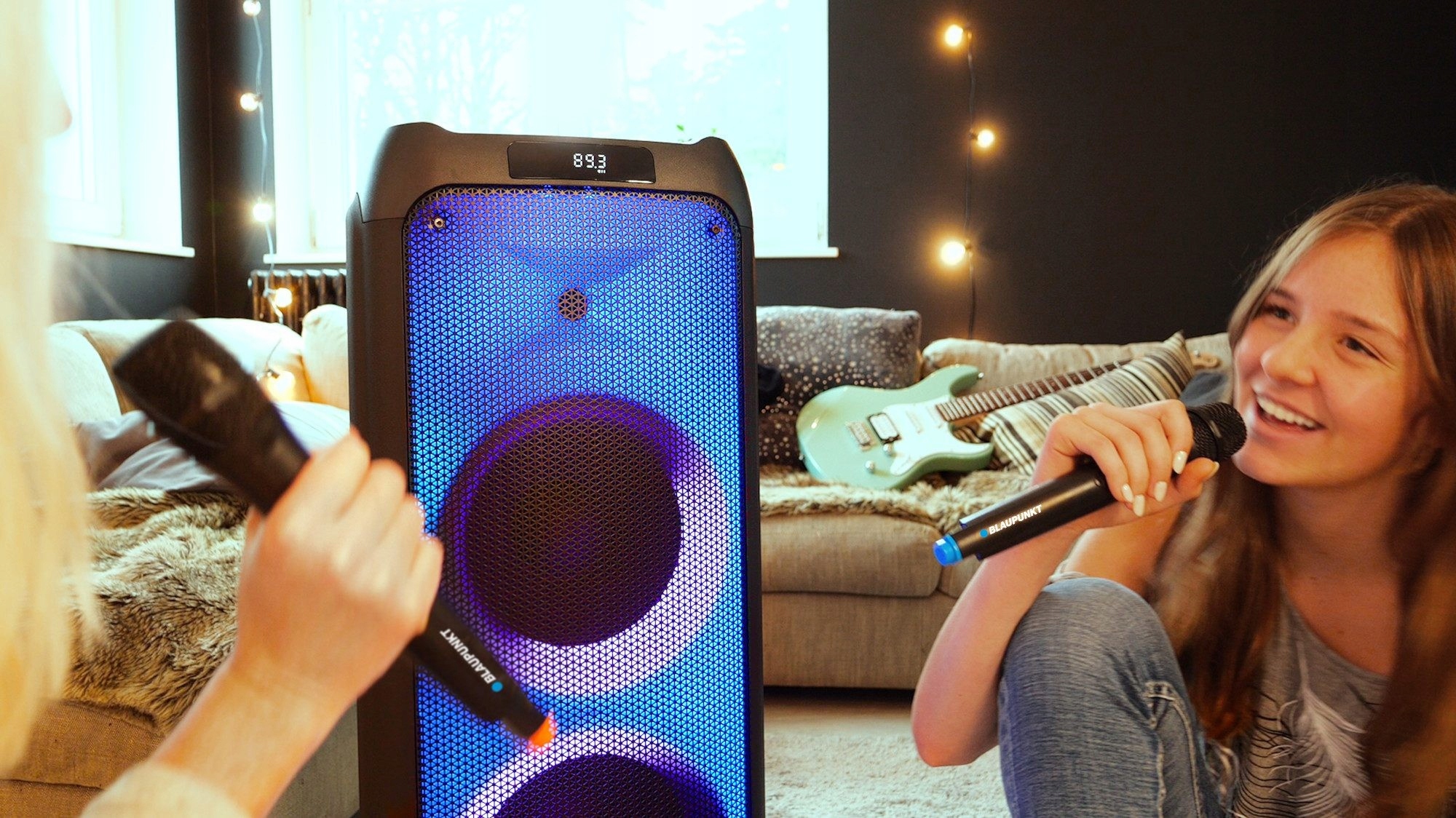 Бездротова гра через Bluetooth, функція TWS (можливість підключення двох динаміків), караоке з 2 мікрофонами бездротовими та гіпнотизуючими світлодіодними світильниками - це рецепт незабутніх моментів.