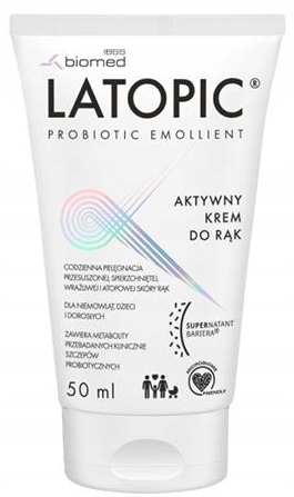 Відновлюючий крем для рук Latopic комплексно живить, захищає та живить атопічну, суху та схильну до подразнень шкіру. Завдяки багатій формулі ефективно зволожує і змащує, швидко знімає свербіж і регенерує. Регенеруючий крем для рук Latopic - містить метаболіти Lactobacillus sp., які мають природну антимікробну дію та допомагають запобігти розвитку Staphylococcus aureus, який може посилити шкірні симптоми у людей з атопічною шкірою. Призначений для щоденного догляду за шкірою немовлят, дітей і дорослих.