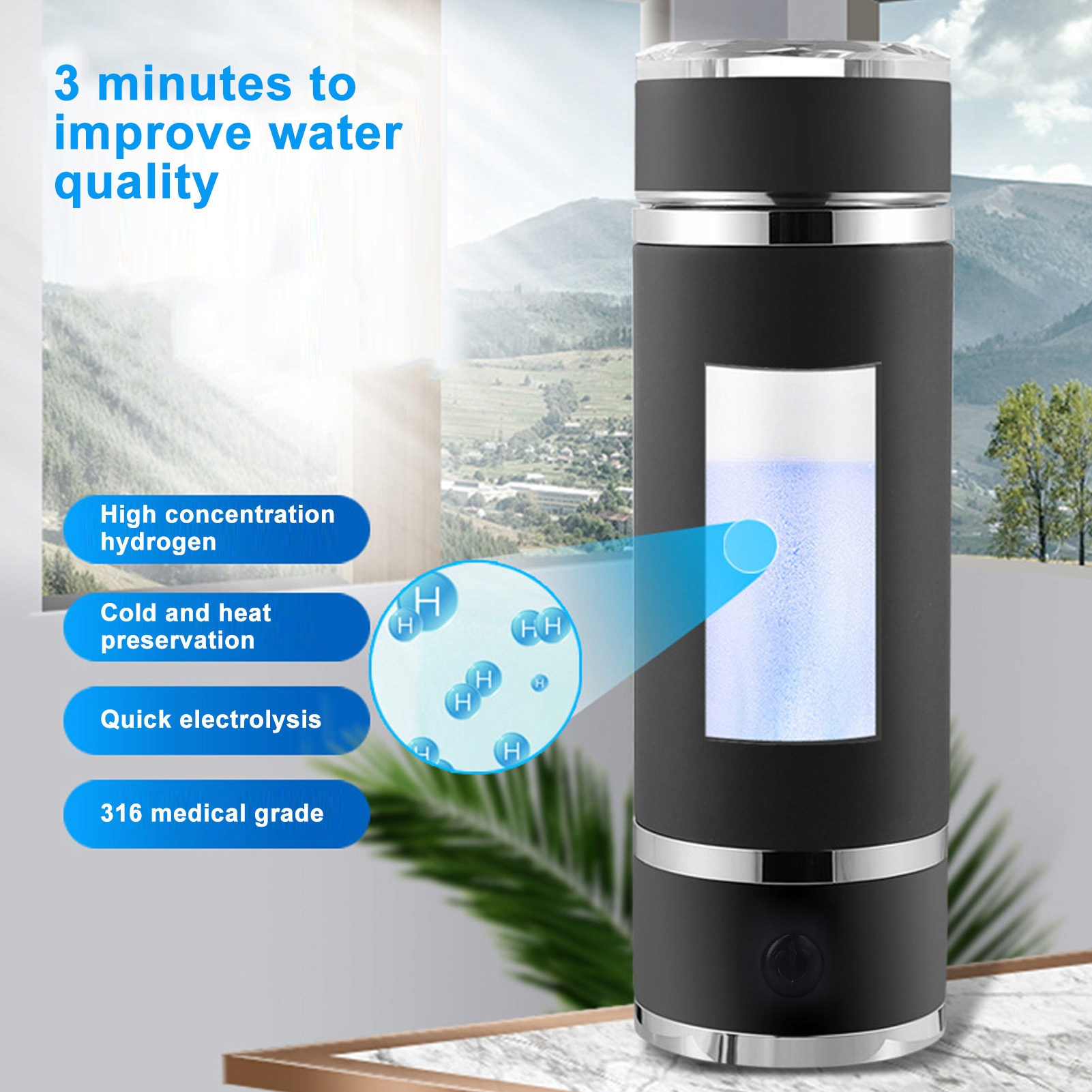 3. Переваги: щоденне вживання водневої води може зменшити окислювальний стрес в організмі, тим самим затримуючи процес старіння, зміцнюючи імунну систему та прискорюючи метаболізм та всмоктування поживних речовин. Вода є однією з найважливіших продуктів для людського організму, а додавання водню до води може збільшити його антиоксидантні властивості, а це означає, що вона допомагає покращити здатність підвищувати енергію, сприяє регенерації м’язів після фізичних навантажень, а також покращує пам’ять та якість сну.