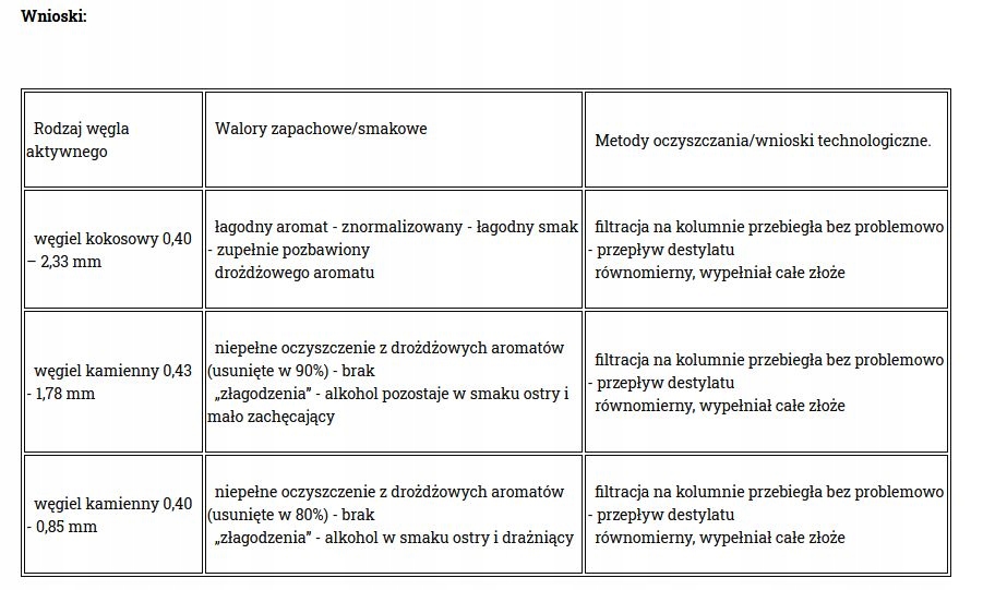 Кокосове вугілля має низький вміст золи, що означає, що т.зв. TDS (загальна кількість розчинених твердих речовин), також відома як водорозчинна зола - на практиці це означає, що зола не «вимивається» з вугілля, основними компонентами якого є, серед іншого, Si, Al, Fe тощо. Це позитивно позначається на смаку очищеної рідини - вуглець його не змінює. Деяке вугілля через присутність головним чином заліза може мати тенденцію до того, щоб рідина набувала трохи гіркого смаку.