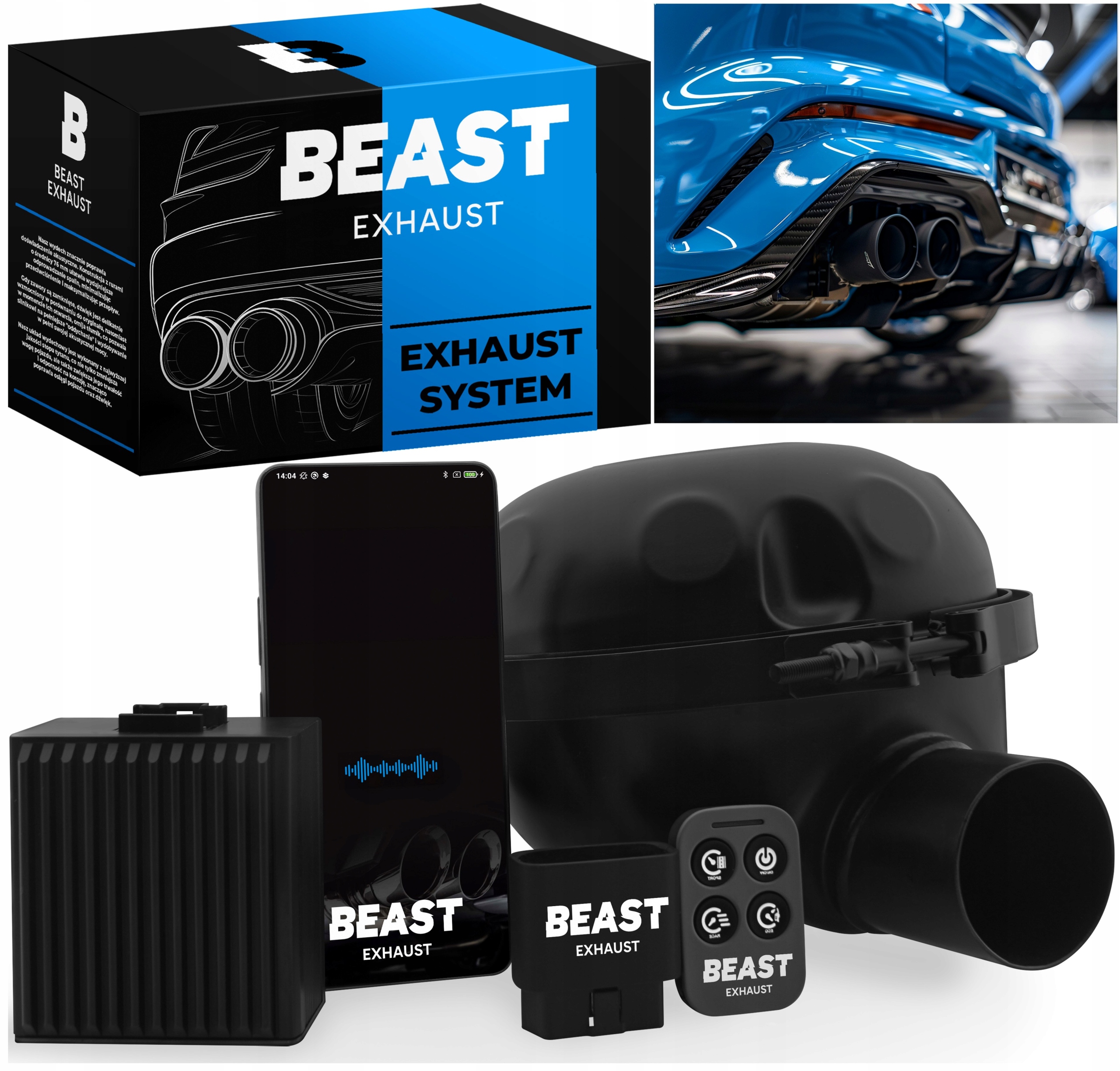 Активний вихлопBeastExhaust™ складається з генератора звуку BeastBoost™, контролера, кабелю та програми, яку можна завантажити з магазину Google. Система зчитує всі необхідні дані, такі як навантаження, швидкість і оберти двигуна. Завдяки цьому ми отримуємо спортивний і реалістичний звук вихлопу, незалежно від версії двигуна.