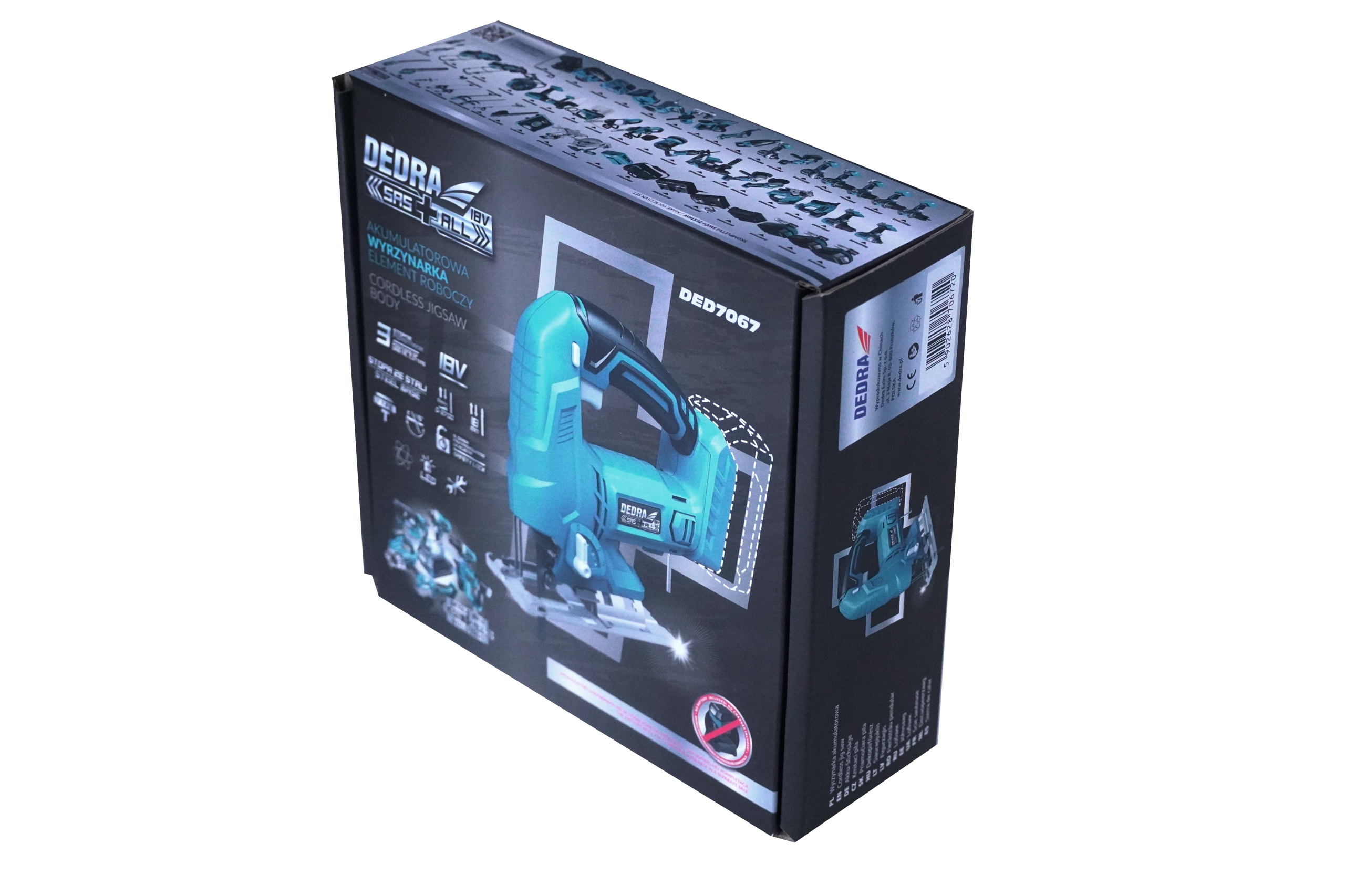 Стрибок леза на 18 мм гарантує дуже високу ефективність пристрою при роботі з твердими та товстими матеріалами. Система без листя сприятиме заміні леза. The DED7067 jigsaw has a built -in blower that removes dust from the cutting line, and the working area is illuminated by the LED DED7067: