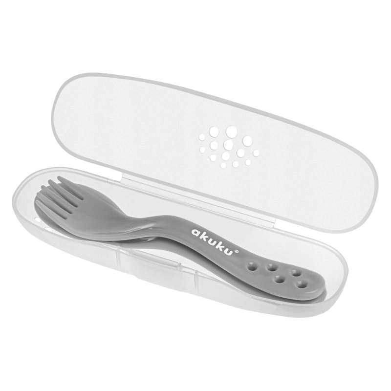 Оснащені практичним футляром, що робить їх корисними поза домом - на прогулянках і в подорожах . Виготовлений з безпечних високоякісних матеріалів, призначених для контакту з харчовими продуктами. Округлі форми столових приборів адаптовані до ніжних ясен маленької дитини.