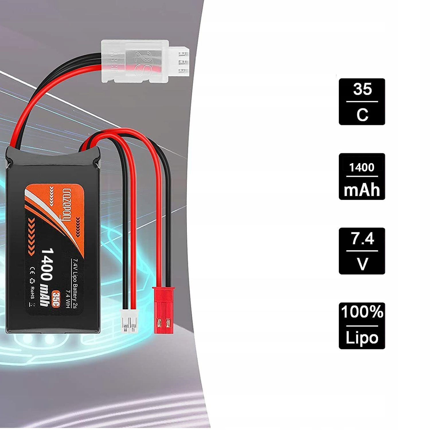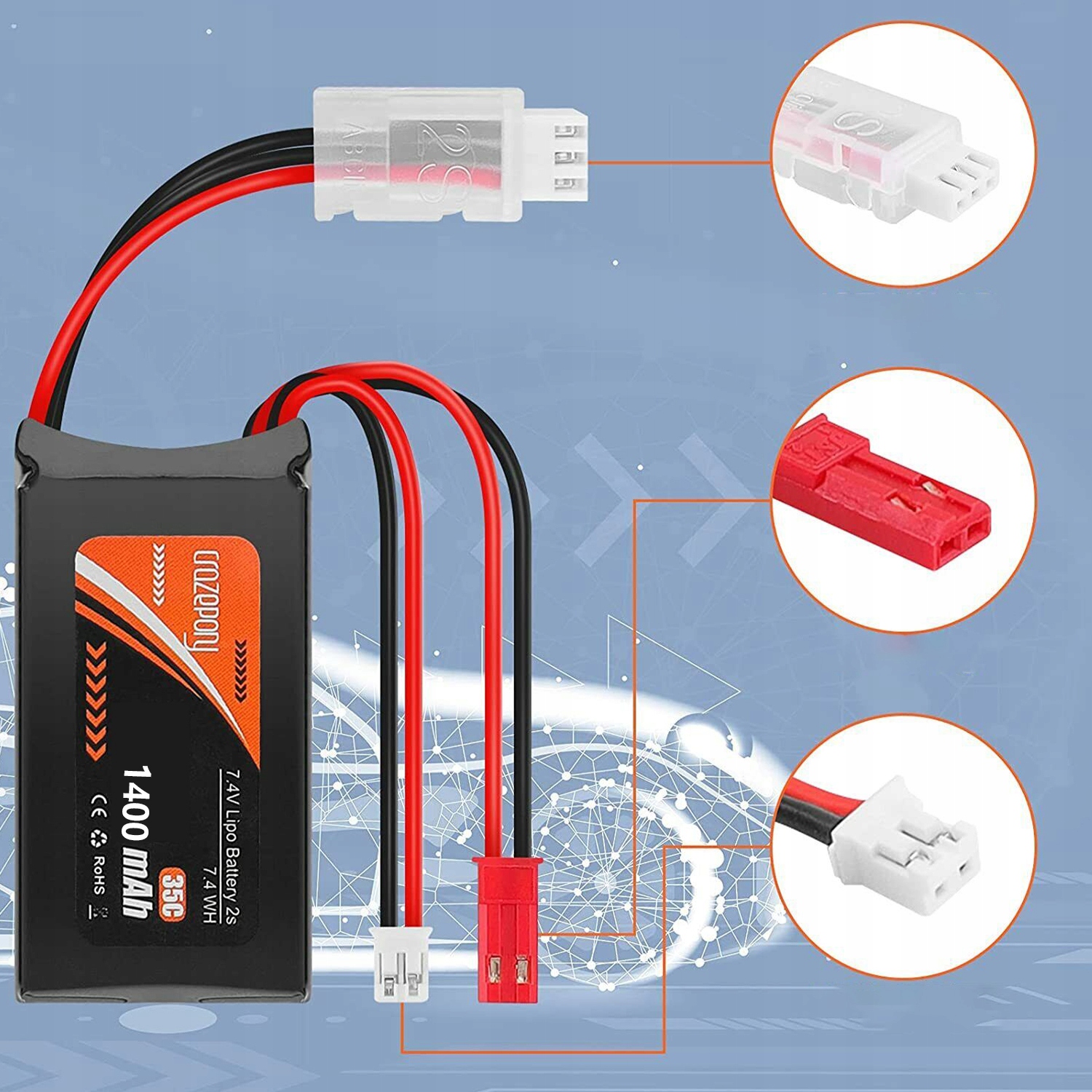 AKUMULATOR BATERIA 7,4V 1400mAh Li-Ion DO AUTA RC 4WD Z PH2.0 JST 35C 2szt