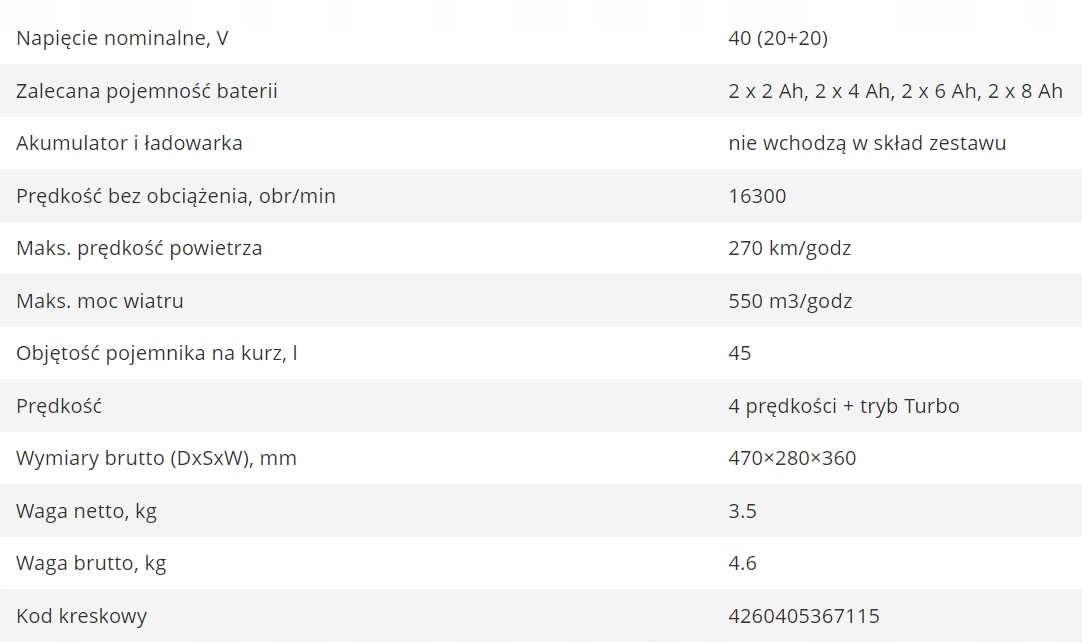 Просматривая «Akumulatorowa dmuchawa ogrodowa Konner&Sohnen 16300 obr/min KS LBV-40V» данный товар из каталога «Пылесосы и воздуходувки» вы можете быть уверены, что после оформления заказа, доставки в Украину, вы получите именно то, что заказывали, в оговоренные сроки и европейского качества.