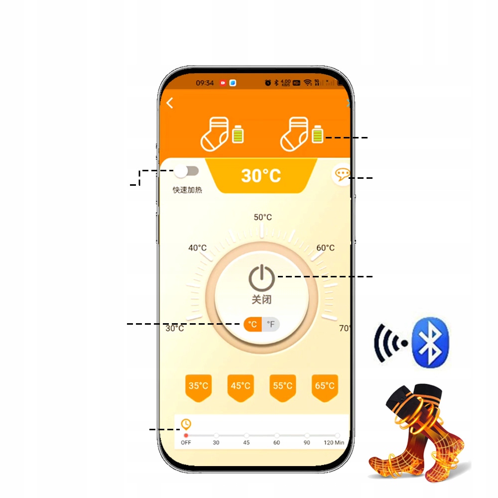 ⏩⏩ 【Подвійне управління застосуванням мобільного телефону + акумулятора】 Акумулятор має власну швидкість живлення та п’ять рівнів 4. Раса, що регулює те, що регулюється вперше додатка (35 ° C, 40 ° C, 50 ° C, 65 ° C). Найвища температура тіла - 45 ° С. Встановіть таймер, щоб вимкнути. І завдяки більш точному контролю температури, вам більше не доведеться зняти шкарпетки для управління акумулятором під час фізичних вправ. Коли телефон скидає, ви також можете керувати температурою, натиснувши та утримуючи перемикач акумулятора протягом 3 секунд. Взуття оснащене знімками на шкарпетках.