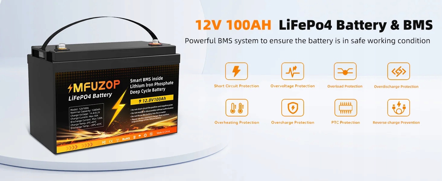 АКУМУЛЯТОР 12V 100AH LiFePO4 1280W З BMS ДЛЯ ФОТОКАМЕРИ, ЧОВНА, ФОТОЕЛЕКТРИКИ