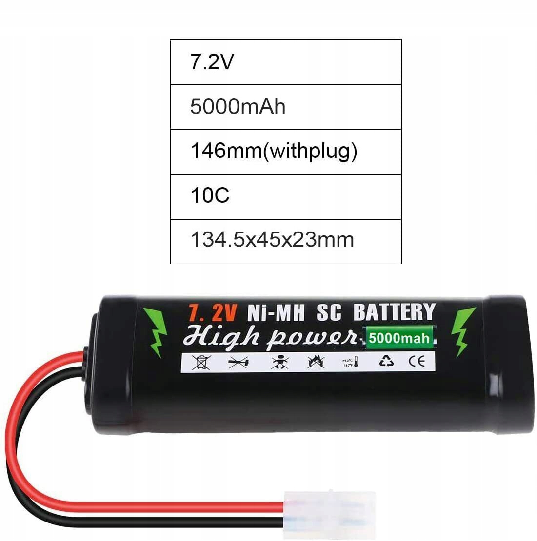 - Удосконалена технологія NiMh 7,2 В 5000 мАг, низькі втрати власної енергії, висока щільність.