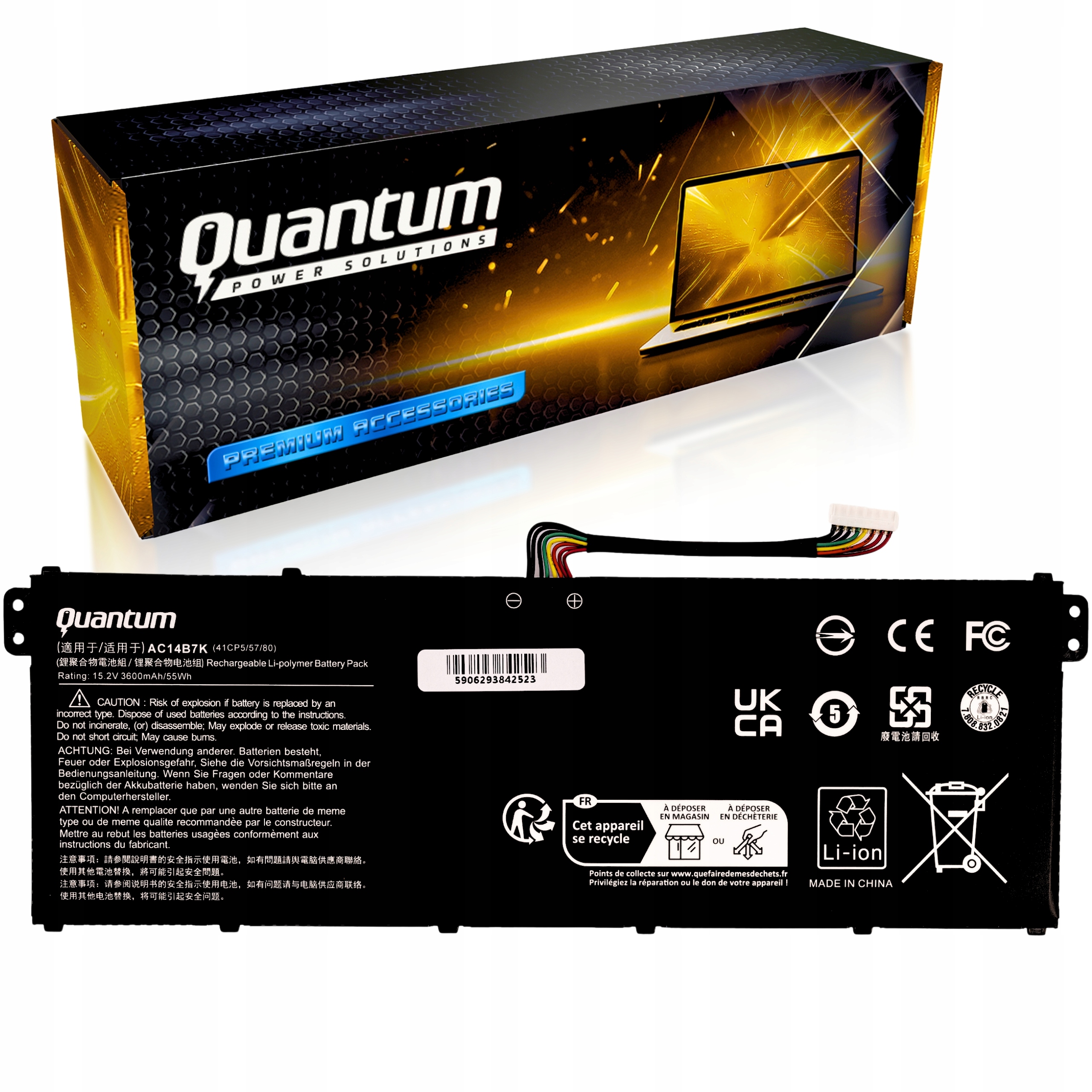QUANTUM – це лінійка акумуляторів на основі відібраних елементів преміум-класу та точної електроніки, що забезпечує високу ефективність, довший час роботи, стабільне живлення та повну сумісність із ноутбуками ACER.
