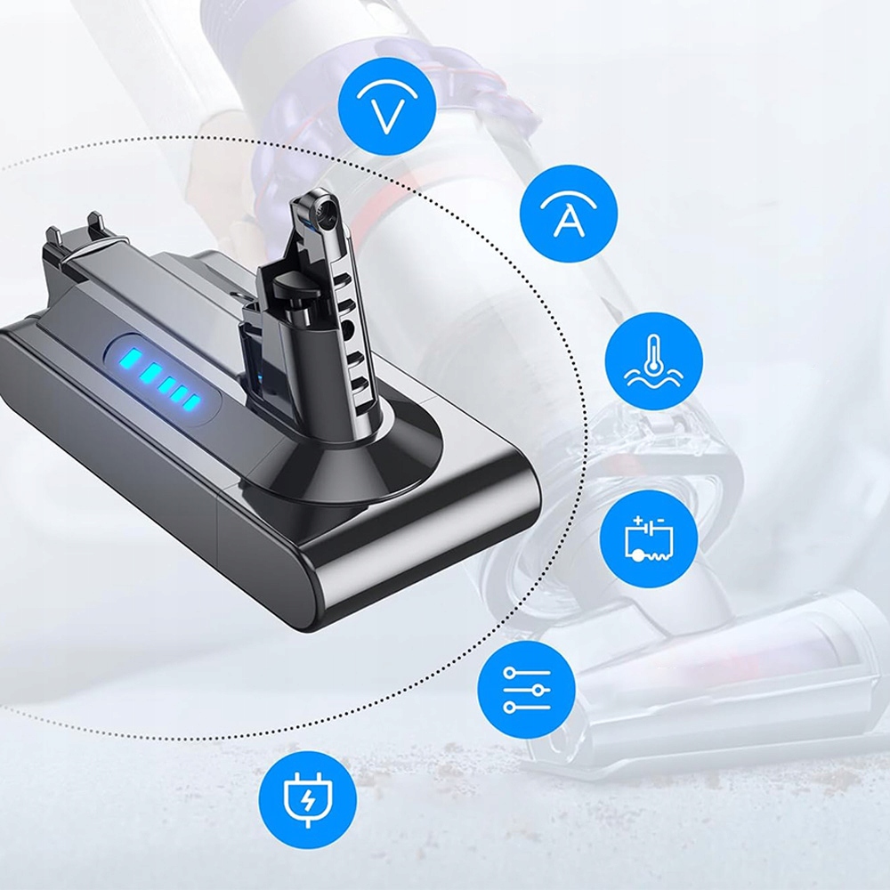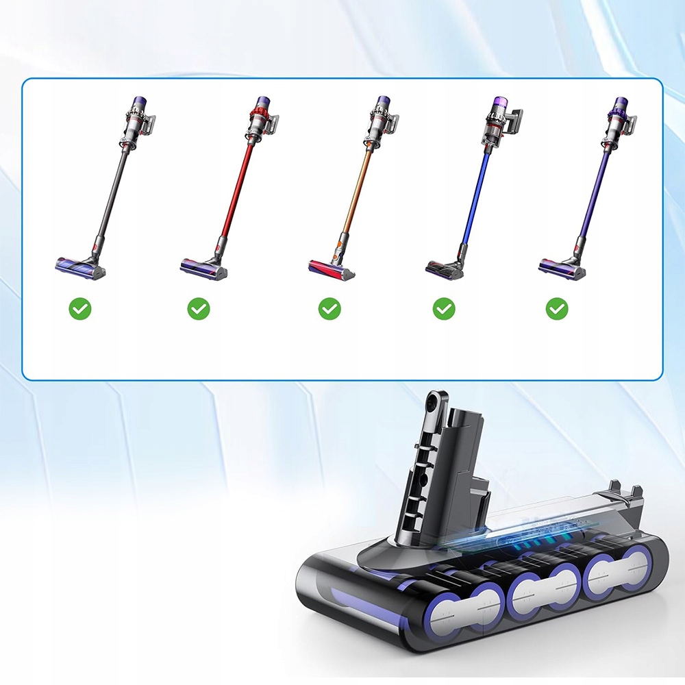 - Наші змінні батареї V10 легко встановити та ідеально підходять. В акумуляторі Dyson V10 використовуються імпортні акумулятори. Запобігає перезарядженню, надмірному розрядженню, надмірному струму та короткому замиканню.