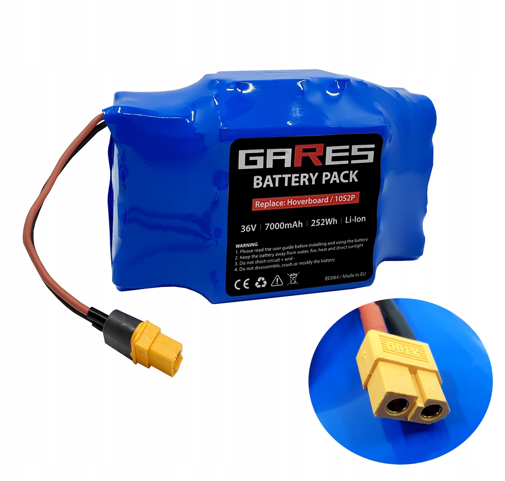Універсальний штекер XT60U-F, який використовується в акумуляторі для підключення акумулятора, гарантує ідеальну сумісність із більшістю доступних на ринку ховербордів та їх зарядними пристроями.