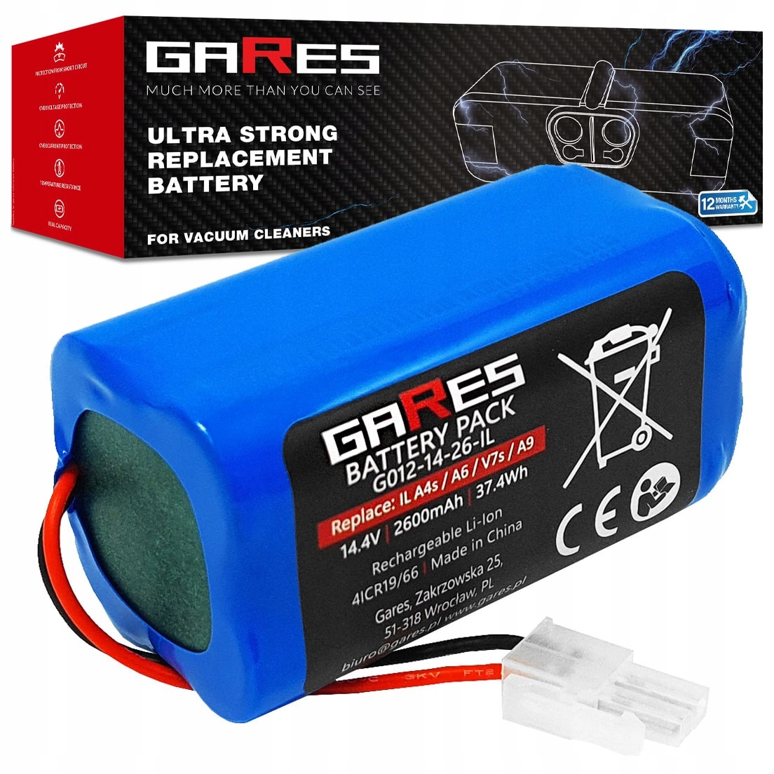 Сильнострумові літій-іонні елементи, які використовуються в акумуляторах GARES®, гарантують найвищу якість пропонованих акумуляторів, забезпечуючи безвідмовну роботу та тривалий термін служби. 100% усунення ефекту пам'яті є ключовим фактором при професійному використанні акумуляторів у компанії або як хобі вдома. Унікальні технології роблять його дуже легким, але він зберігає, порівняно з гідридними елементами, вдвічі більше енергії в елементах. Це робить його дуже міцним і забезпечує тривалий час роботи на одному заряді. Купуючи цю батарею, ви можете бути впевнені, що її ємність реальна і не завищена, на що ми даємо 100% гарантію.
